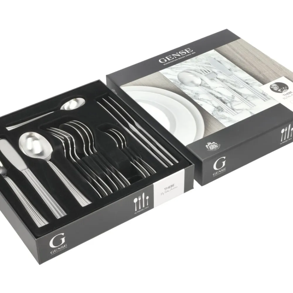 Thebe har en klassisk og tidløs form, der gør bestikket lige så smukt og nutidigt i dag, som da det blev skabt i 1944. Thebe var Genses første moderne bestikserie i rustfrit stål og er inspireret af den overdådige egyptiske stil med stramme og stilfulde linjer. Tåler opvaskemaskine.