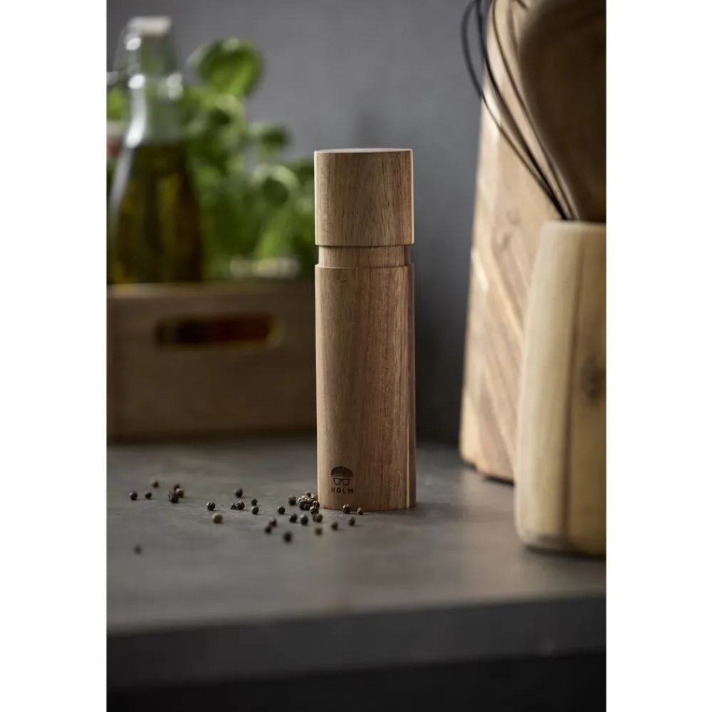 Flot peberkværn i akacietræ med keramisk kværnindsats. Kværnen har et maskulint udtryk, og du kan selv bestemme, hvor groft eller fint du ønsker at kværne. Malingsgraden justeres nemt i bunden af kværnen.