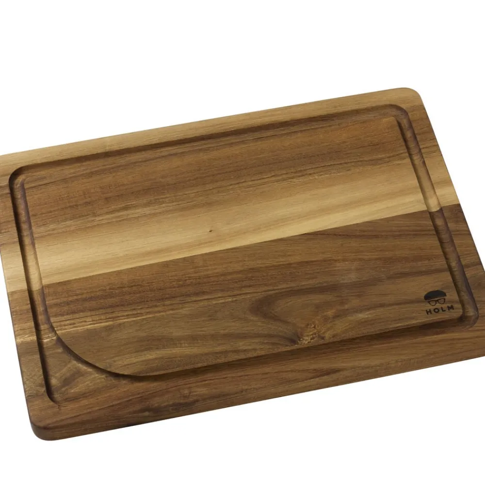 Skærebræt i akacietræ med saftrille. Det perfekte skærebræt til udskæring af store stege samt anden tranchering. Læg aldrig dit skærebræt i blød. Vaskes med varmt vand og mild sæbe.