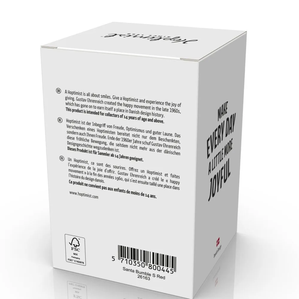 Nissehuer, julemandsskæg, rensdyr og snemænd. Glæde, varme og forventning. Julen er smilenes fest, og vores julehoptimister skal nok få smilene til at brede sig i den glade højtid. De er oplagte som humoristisk julepynt, men egner sig også fortrinligt som værtindegave, adventsgave og mandelgave. For glæde er jo en gave!