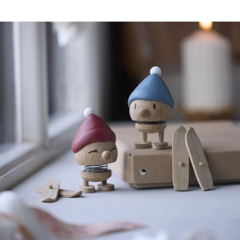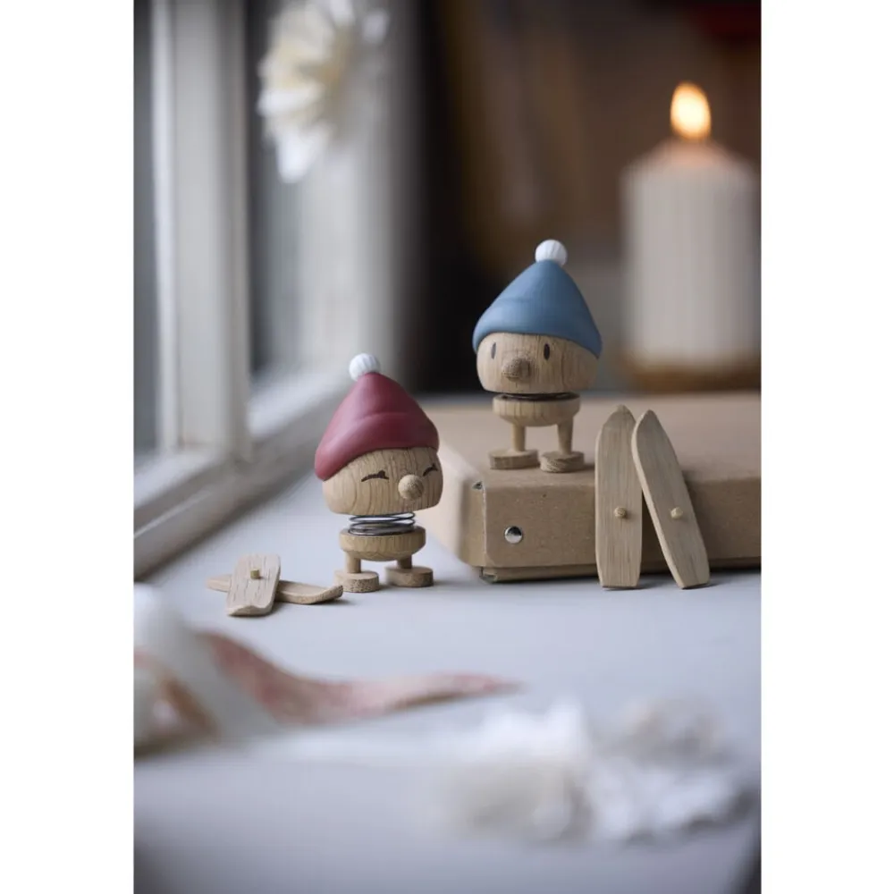 Giv den rødkindede skihoptimist et lille puf og se den hoppe af glæde over den glitrende hvide sne på fjeldet. Skiing Bimble står klar med sin røde tophue – både spændt og stolt – klar til eventyr i vinterlandskabet. Skiene kan tages af og på.