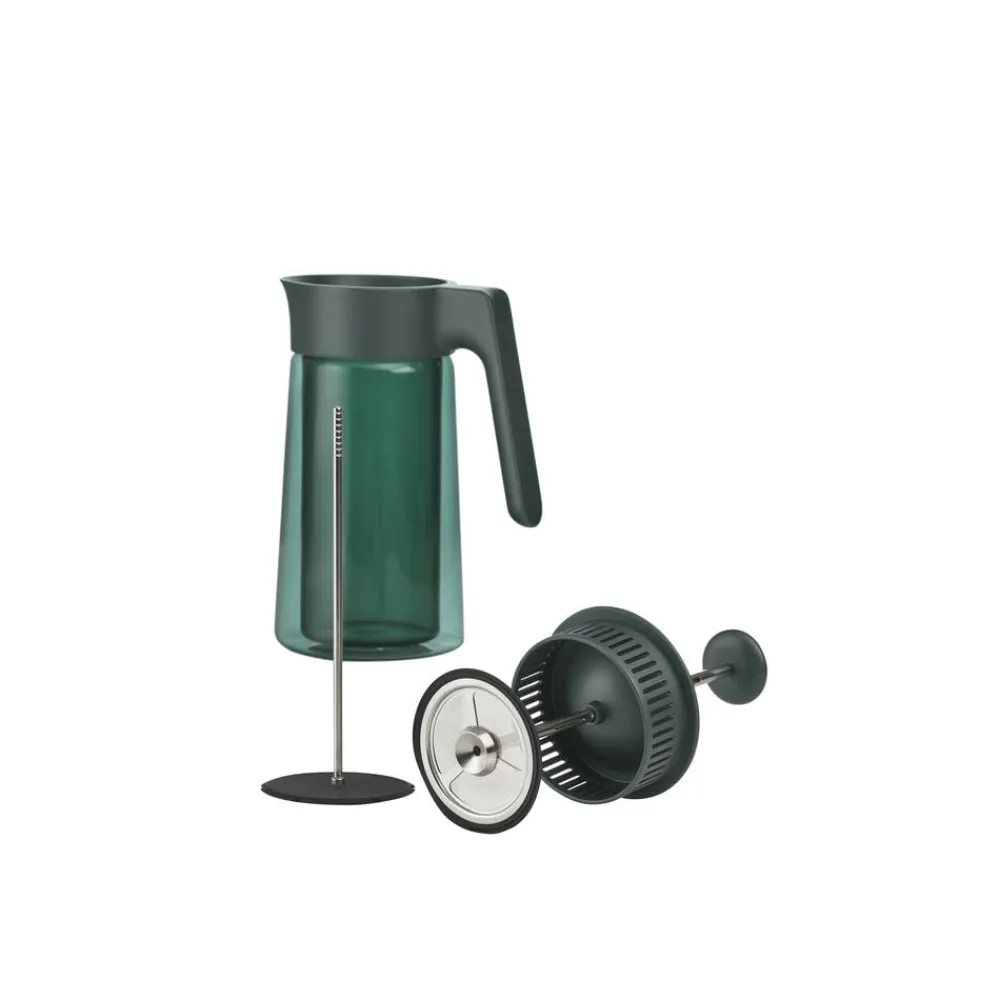 Jacob Jensen Coffee Press med CoffeeCatcher™ gør din daglige kafferutine enklere. I stedet for at efterlade den brugte kaffegrums i bunden af din Coffee Press samles grumset oven på CoffeeCatcher™. Dette gør det nemt at fjerne grumset og efterlader Coffee Press ren og klar til næste brygning. Den dobbeltvæggede konstruktion sørger for, at kaffen holder den perfekte temperatur og beskytter dine hænder mod varmen fra glasset. Coffee Pressen rummer 6 til 8 kopper.