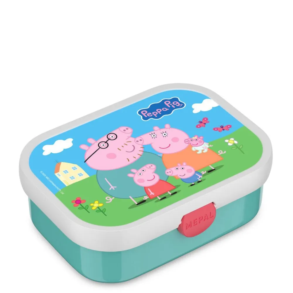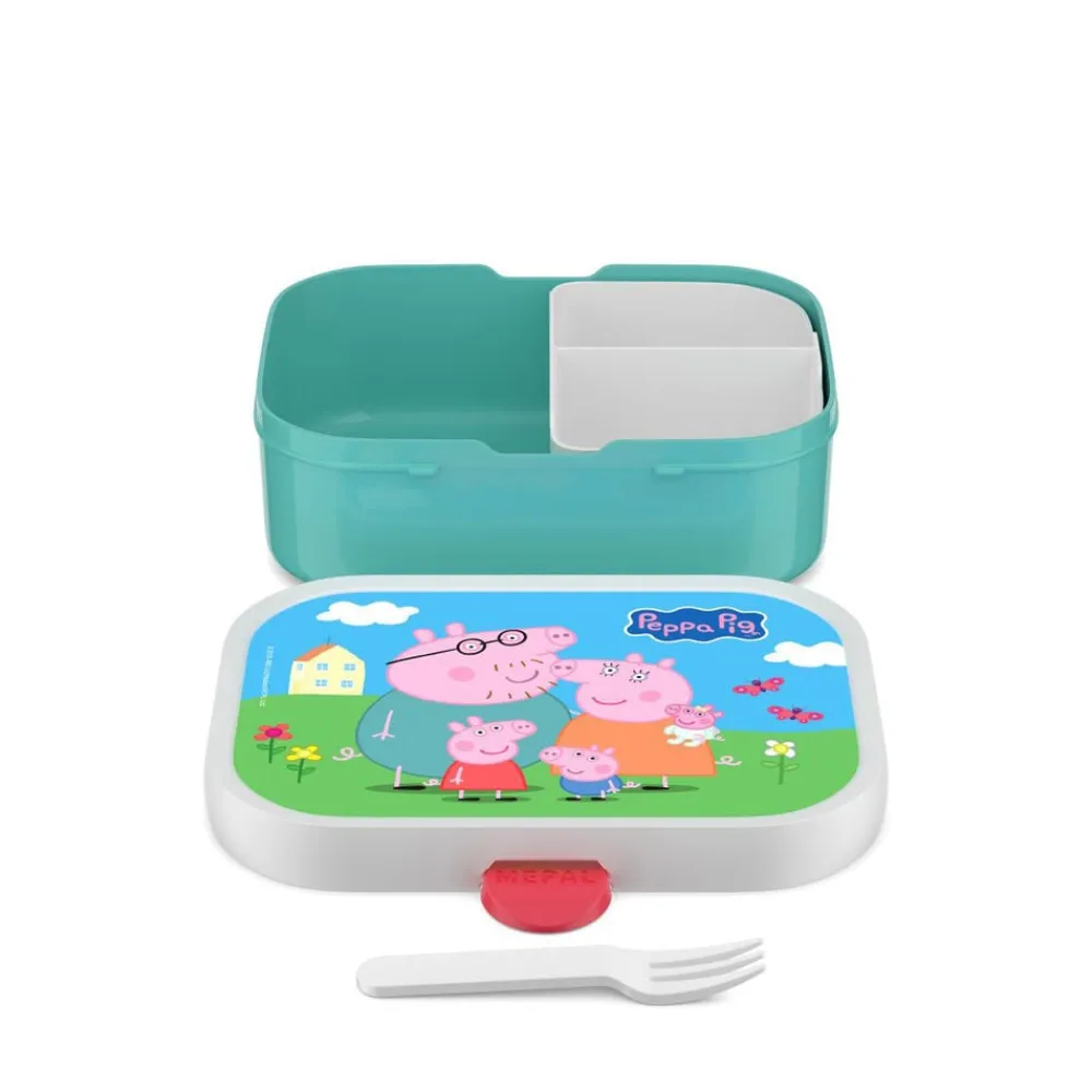 Robust og rummelig Mepal madkasse med Gurli Gris-motiv. Madkassen har en smart og effektiv lukkemekanisme, som er nem for børnene at betjene. Madkassen måler 17,5 x 13 x 6 cm og indeholder en lille gaffel og en aftagelig indsats med to små rum.