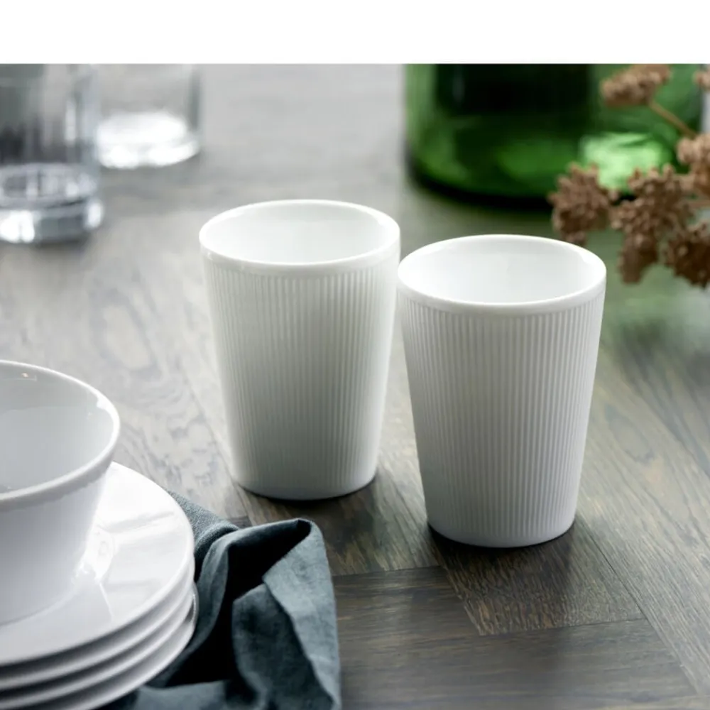 2 stk. Eventail termokrus, 25 cl. Velegnet til kaffe, te og andre varme drikke. Træd ind i en fortryllende verden med Eventail – et betagende stel prydet af et forførende mønster, der leder tankerne hen på elegante vifter. Med sin legende og sofistikerede udstråling tilføjer Eventail en sublim æstetik til dit måltid. Dette sande kunstværk hæver din spiseoplevelse til nye højder.