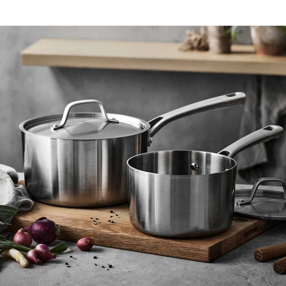 Kasserolle med låg, 1,9 liter (16 cm). Divette-serien fra Pillivuyt Gourmet er fremstillet i 3-ply rustfrit stål med en silkeblød satinfinish på ydersiden, som giver et enkelt og elegant udtryk. Konstruktionen af to lag rustfrit stål med et aluminiumlag imellem betyder, at varmen fordeles hurtigt og fastholdes jævnt. Indvendigt er seriens kasseroller forsynet med en praktisk måleskala til nem og præcis opmåling.