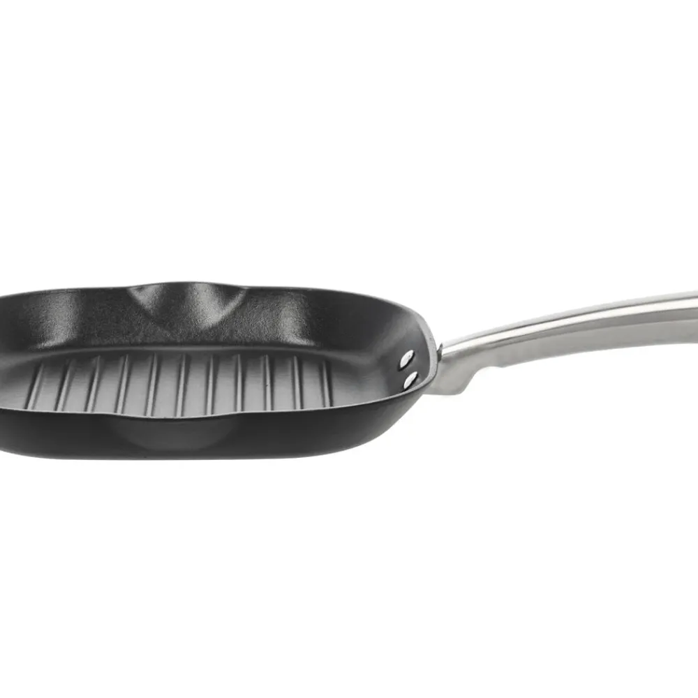 Grillpande, 48,2 x 28 x 6,5 cm. Garonne-serien fra Pillivuyt Gourmet er til dig, der elsker at stege ved en god, høj temperatur – uanset om det er saftige steaks, simreretter eller en lynstegt wokret. Garonne-panderne er fremstillet af robust letvægtsstøbejern med en keramisk non-stick-belægning og et diskret bikubemønster i bunden. Det forhøjede mønster reducerer kontaktfladen mellem maden og panden, hvilket mindsker risikoen for, at maden brænder fast og gør det nemmere at opnå en flot stegeskorpe.
