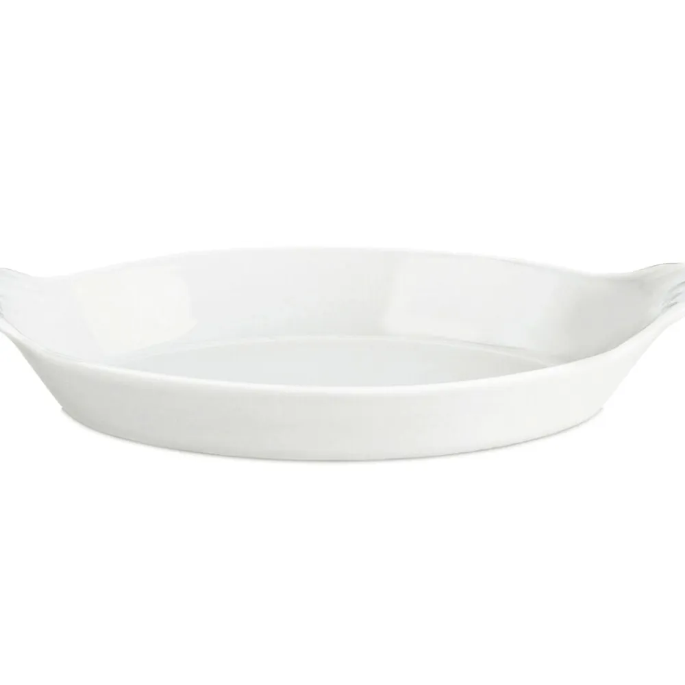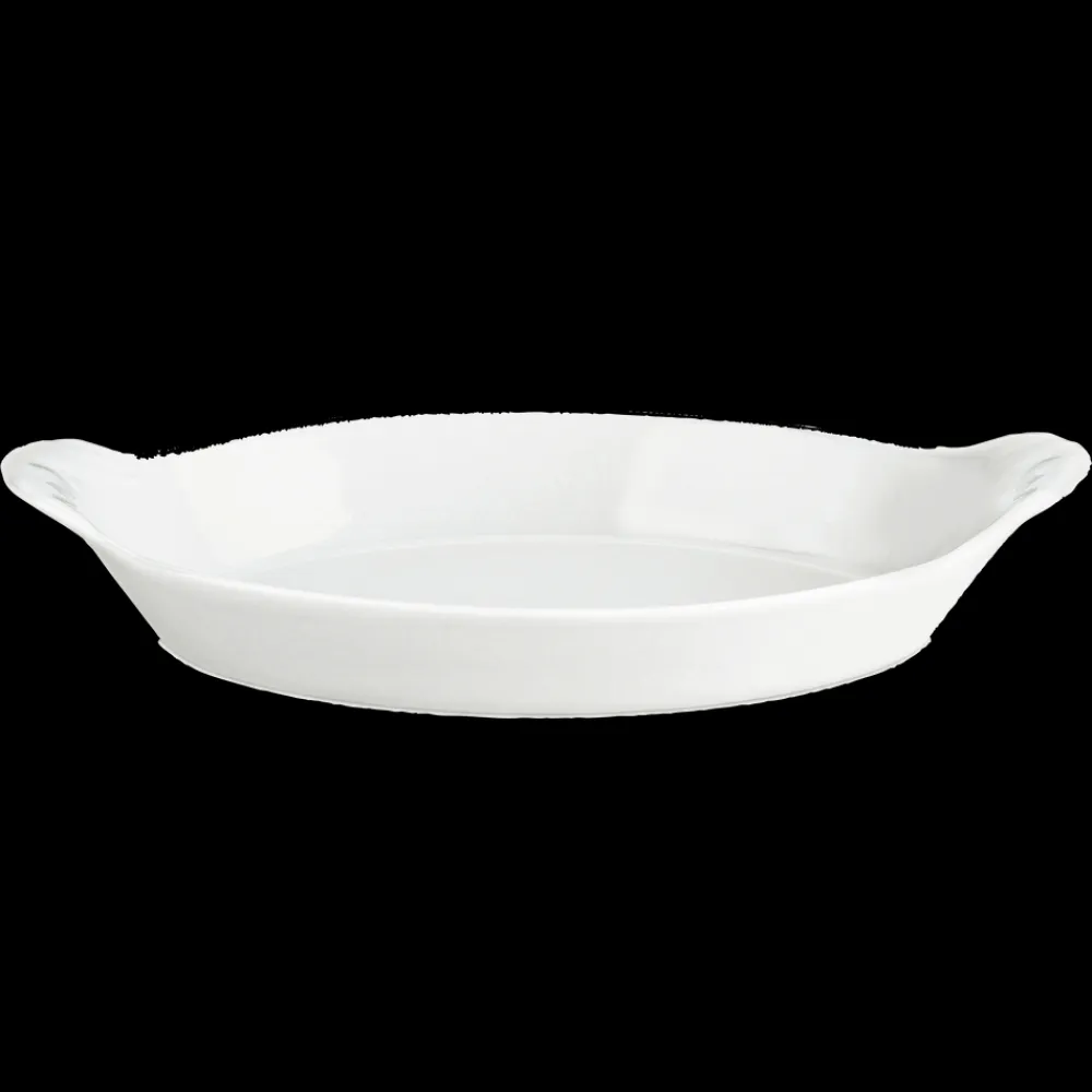 Klassisk oval serveringstallerken på 28 x 16 cm med håndtag, der også kaldes en ”æggepande”. Kan sættes direkte på komfuret og i ovnen.