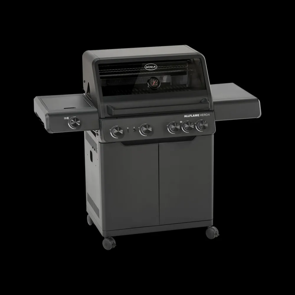 Der fås cover (varenr. 23917), rotisseri (varenr. 36098) og grillplade (varenr. 35569) til Rösle AllFlame Hero 4 gasgrill, som kan tilkøbes separat.