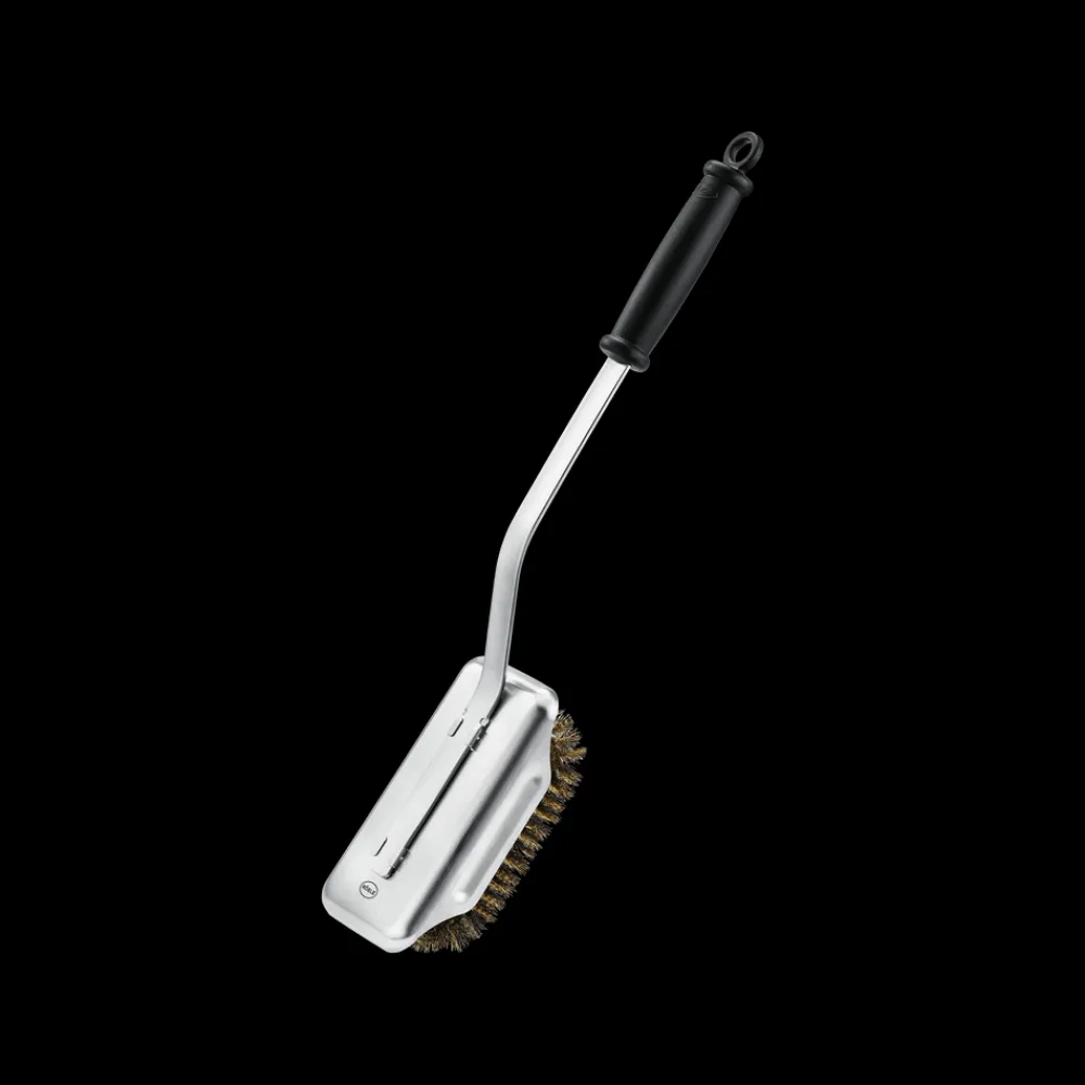 Praktisk grillbørste med et 47 cm langt stålgreb og håndtag. Perfekt til rengøring af alle typer grillriste og plader – også dem med belægning. Udstyret med messingbørster, der former sig efter risten og gør rengøringen lettere. Når børstehovedet bliver slidt, kan det nemt udskiftes. Reservebørstehoved kan tilkøbes separat (varenr. 36097).