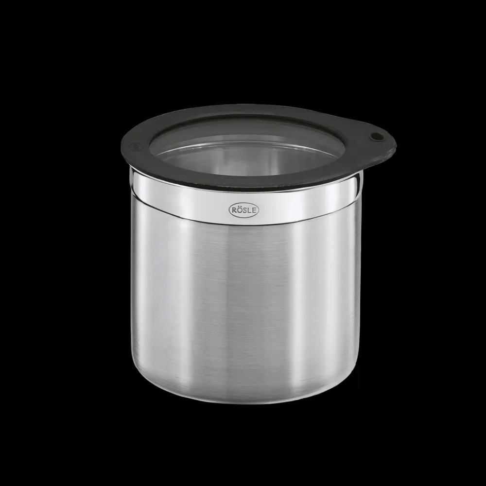 RÖSLE opbevaringsdåse af rustfrit stål er perfekt til opbevaring af mad, da smagen ikke påvirkes, samtidig med at den er nem at rengøre samt holdbar. Silikonekanten på glaslåget forsegler opbevaringsdåsen helt tæt, mens det flade låg gør det nemt at stable flere opbevaringsdåser.