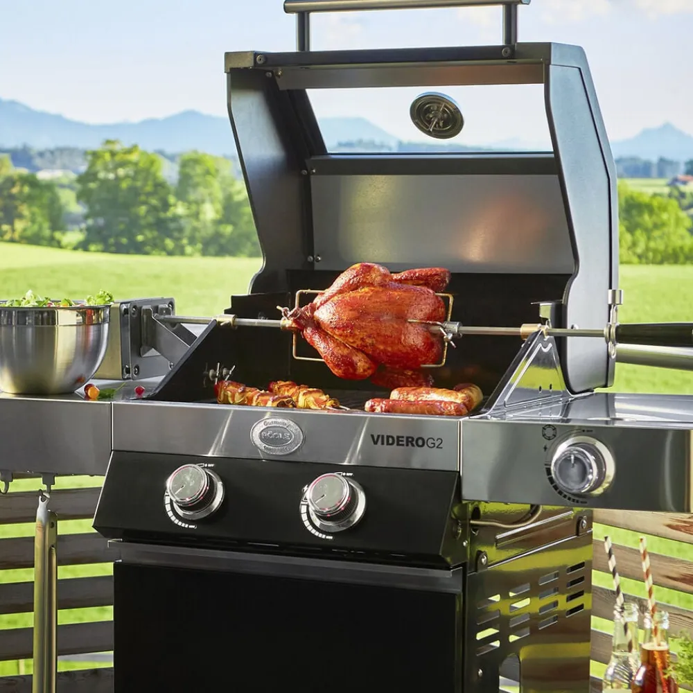 Rotisserie til tilberedning af kylling, spidsteg, gyros osv. Rotationshastigheden på ca. 3 omdrejninger pr. minut fordeler safterne jævnt og efterlader kødet sprødt udvendigt og saftigt indeni.