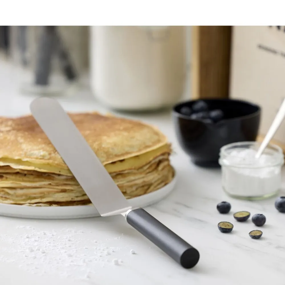 Emma stålpalet har et langt, smalt blad med knæk, som gør den perfekt til at vende pandekager, smøre glasur og meget mere. Den er et køkkenredskab, du vil gribe igen og igen og nyde foreningen af stil og funktionalitet. Nem at rengøre i opvaskemaskinen.