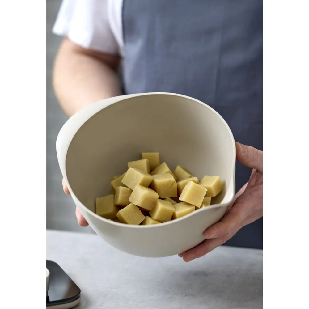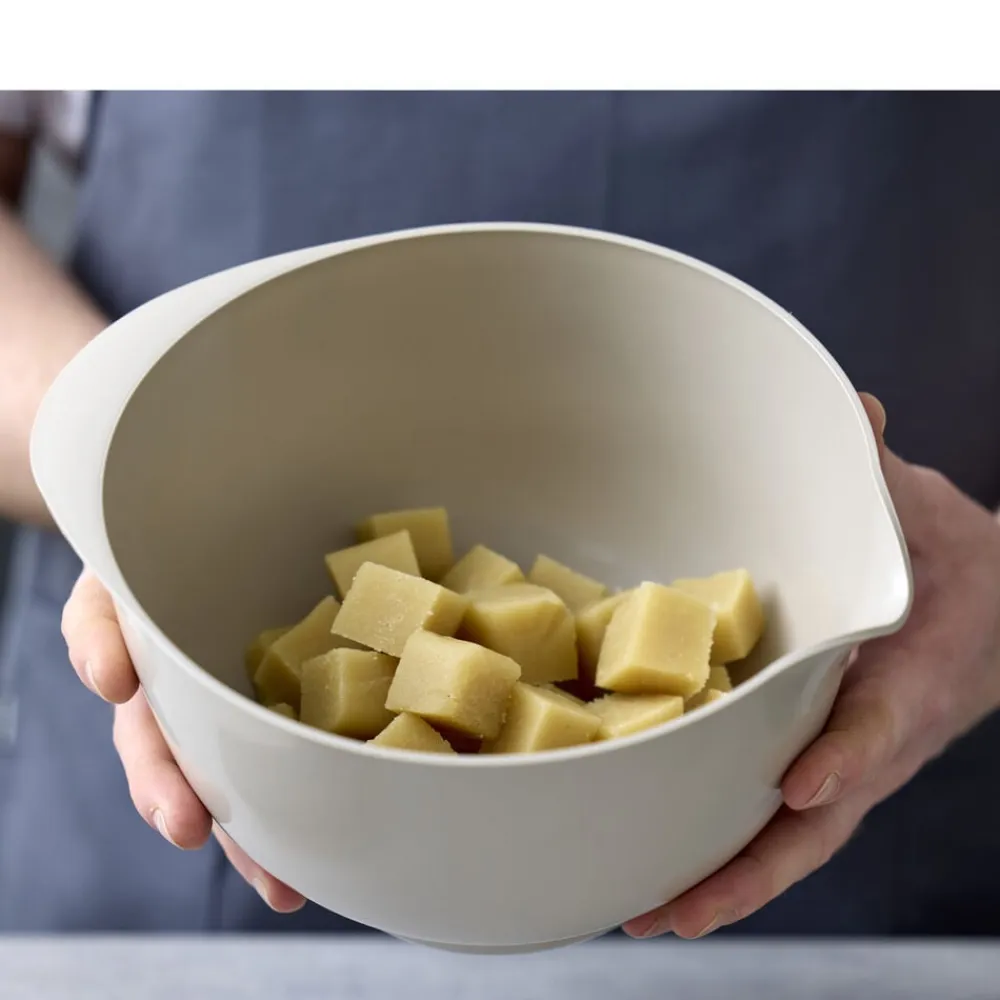 Margrethe-skålen er den klassiske røreskål med det gode greb, den praktiske hældetud og den skridsikre bundring. Den nye version af Margrethe-skålen er fremstillet af plastmaterialet Durostima®. Skålen er nu endnu stærkere og mere brudsikker, og med det nye materiale kan den også tåle mikroovn og fryser. Margrethe-skålen er velegnet til såvel tilberedning som servering, og tilkøbes der låg, er røreskålen omdannet til en praktisk opbevaringsskål. 5 års garanti.