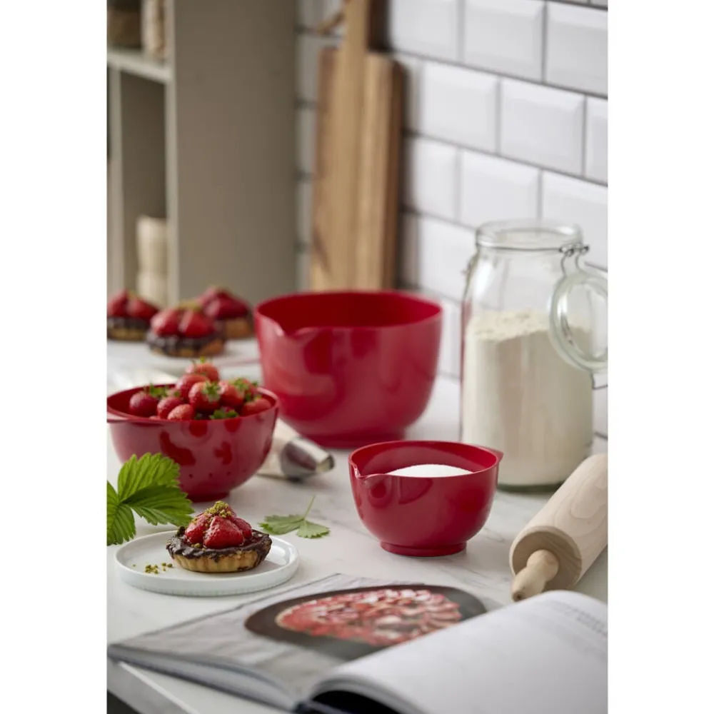 Margrethe-skålen er den klassiske røreskål med det gode greb, den praktiske hældetud og den skridsikre bundring. Den nye version af Margrethe-skålen er fremstillet af plastmaterialet Durostima®. Skålen er nu endnu stærkere og mere brudsikker, og med det nye materiale kan den også tåle mikroovn og fryser. Margrethe-skålen er velegnet til såvel tilberedning som servering, og tilkøbes der låg, er røreskålen omdannet til en praktisk opbevaringsskål. 5 års garanti.