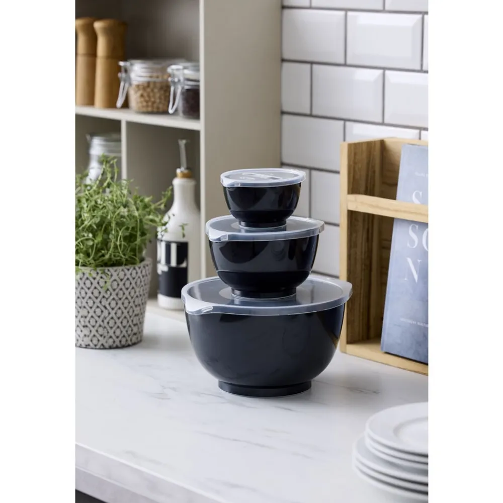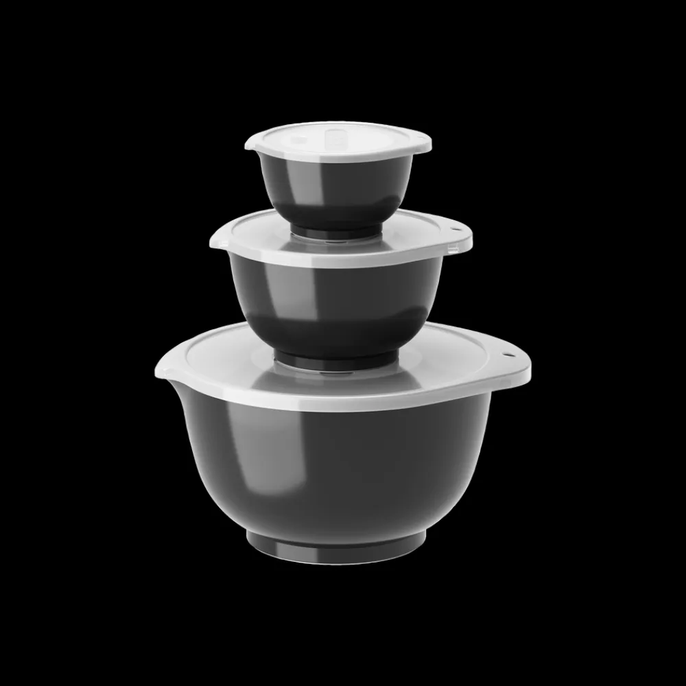 Margrethe røreskålesæt fra Rosti i 3 af de mest anvendte størrelser. Sættet indeholder 0,25 + 0,75 + 3 liter Margrethe-skåle med tilhørende låg.