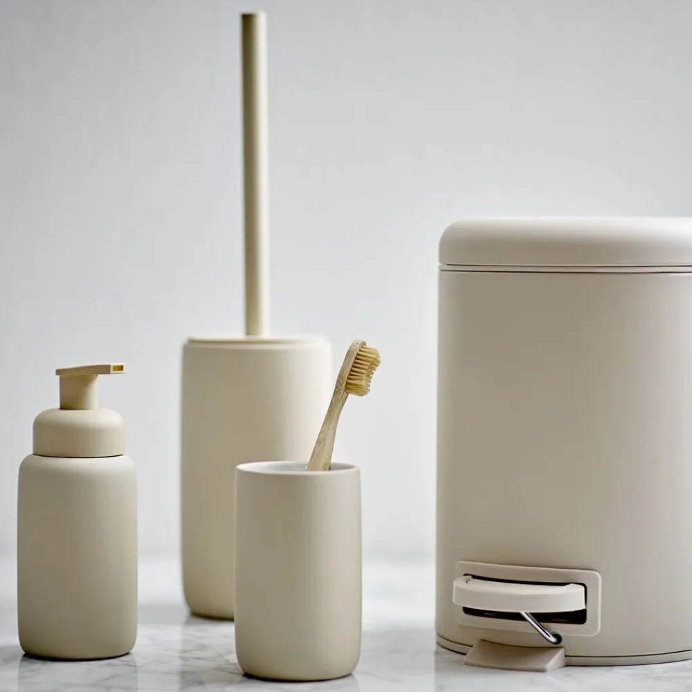 Mono badserien har et enkelt formsprog med bløde afrundede kanter, der spiller perfekt sammen med overfladens bløde rubberfinish. Serien består af sæbedispenser, tandbørsteholder, pedalspand og toiletbørste, og farverne er lige så lækre og douce som produkternes soft coating. Sæbedispenseren har skumpumpe, så sæben kommer ud som blødt skum. Det giver en lækker følelse, når du vasker hænder, og sparer desuden på mængden af sæbe.