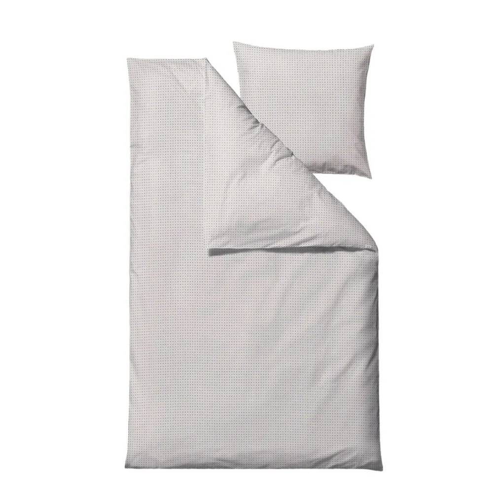 Et diskret og minimalistisk design med fine kvadratiske prikker, der skaber et roligt og elegant mønster. Petit er til dem, der foretrækker et afdæmpet, grafisk udtryk i soveværelset. Fremstillet i 100 % bomuld i en blød og åndbar renforcé lærredsvævning.