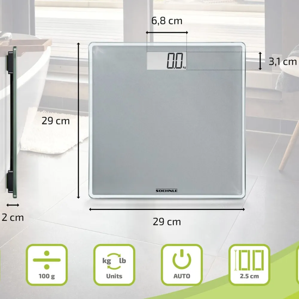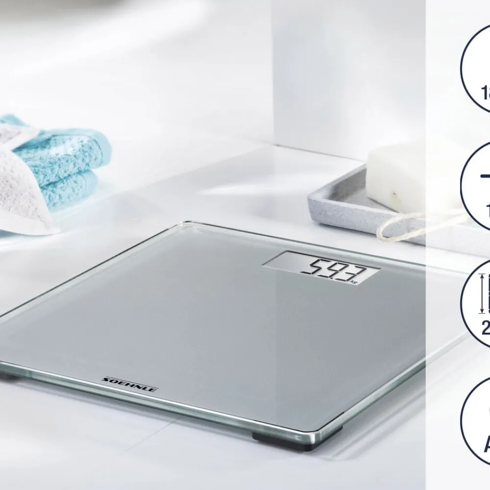 Style Sense Compact 300 er en praktisk personvægt med en stærk platform i 8 mm sikkerhedsglas. Vægten tænder automatisk, når du stiller dig op, og slukker igen, når du er færdig. Den måler op til 180 kg med interval på 100 g. Resultatet vises tydeligt på den store LCD-skærm, og du kan frit vælge mellem kg, lb eller st.