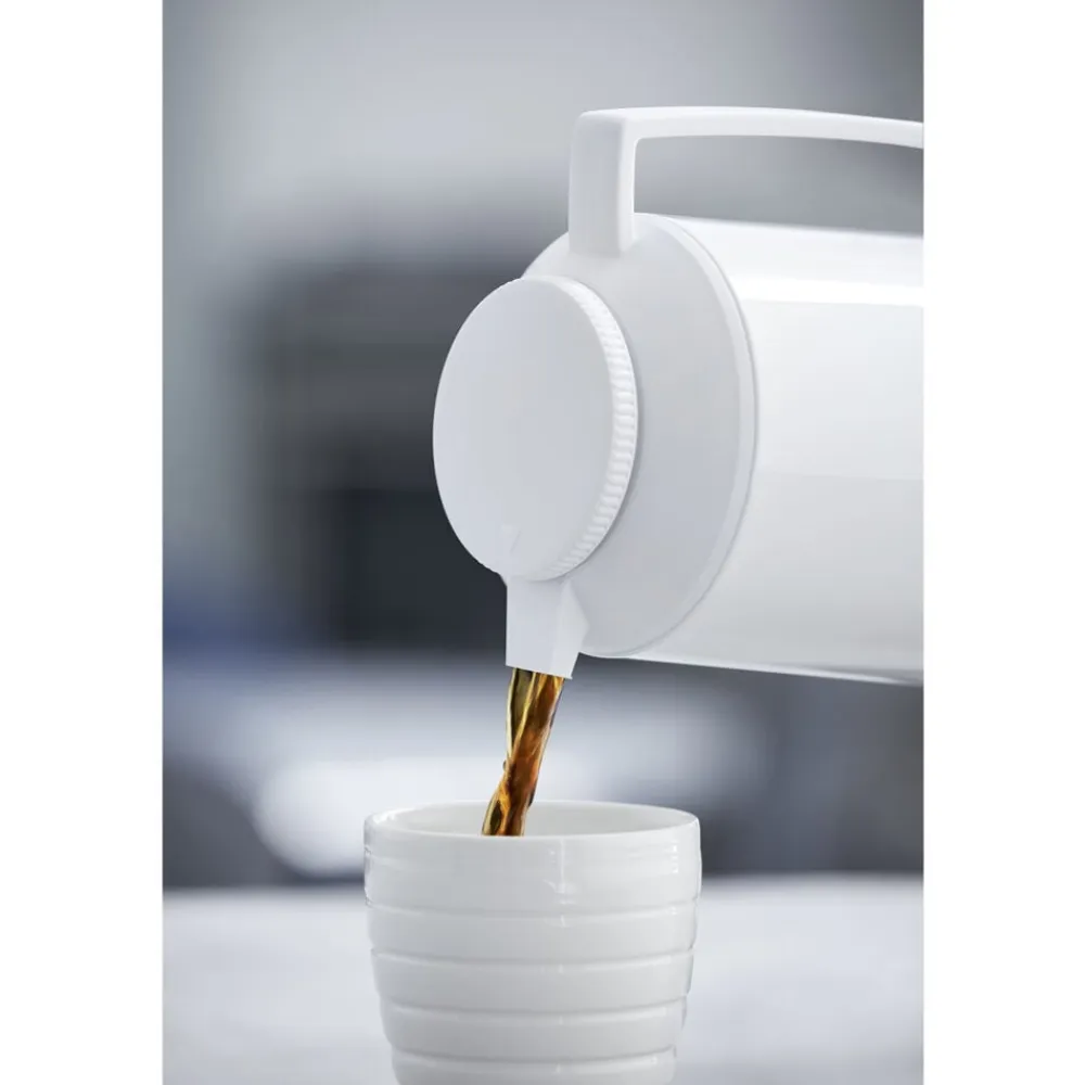 Termokanden fra Tiger er med sit enkle, klassiske design den perfekte termokande og lige velegnet til kolde og varme drikke. Kanden har glasindsats, rummer 1 liter og åbnes og lukkes ved at dreje på låget. Hvid.