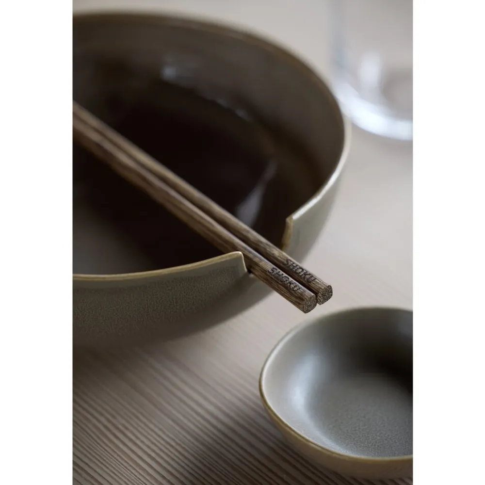Shoku-stellet forener japansk minimalisme med skandinavisk enkelhed. Med sine organiske former og dæmpede farver skaber Shoku en harmonisk og rolig atmosfære omkring bordet. Stellets dele er designet med rene linjer og silkeblød, mat og blank glasur, der understreger en naturlig æstetik og løfter måltidets visuelle og kulinariske oplevelse. Shoku betyder mad eller spise på japansk og symboliserer glæden ved både maden og samværet omkring bordet. Med sine holdbare materialer og tidløse design er Shoku-stellet det ideelle valg til både daglig brug og særlige anledninger, hvor skønhed og funktionalitet mødes.