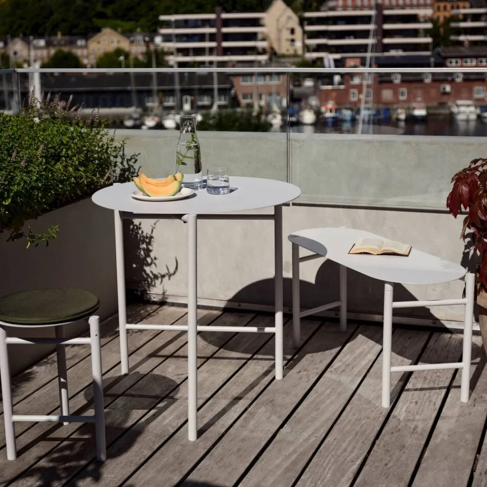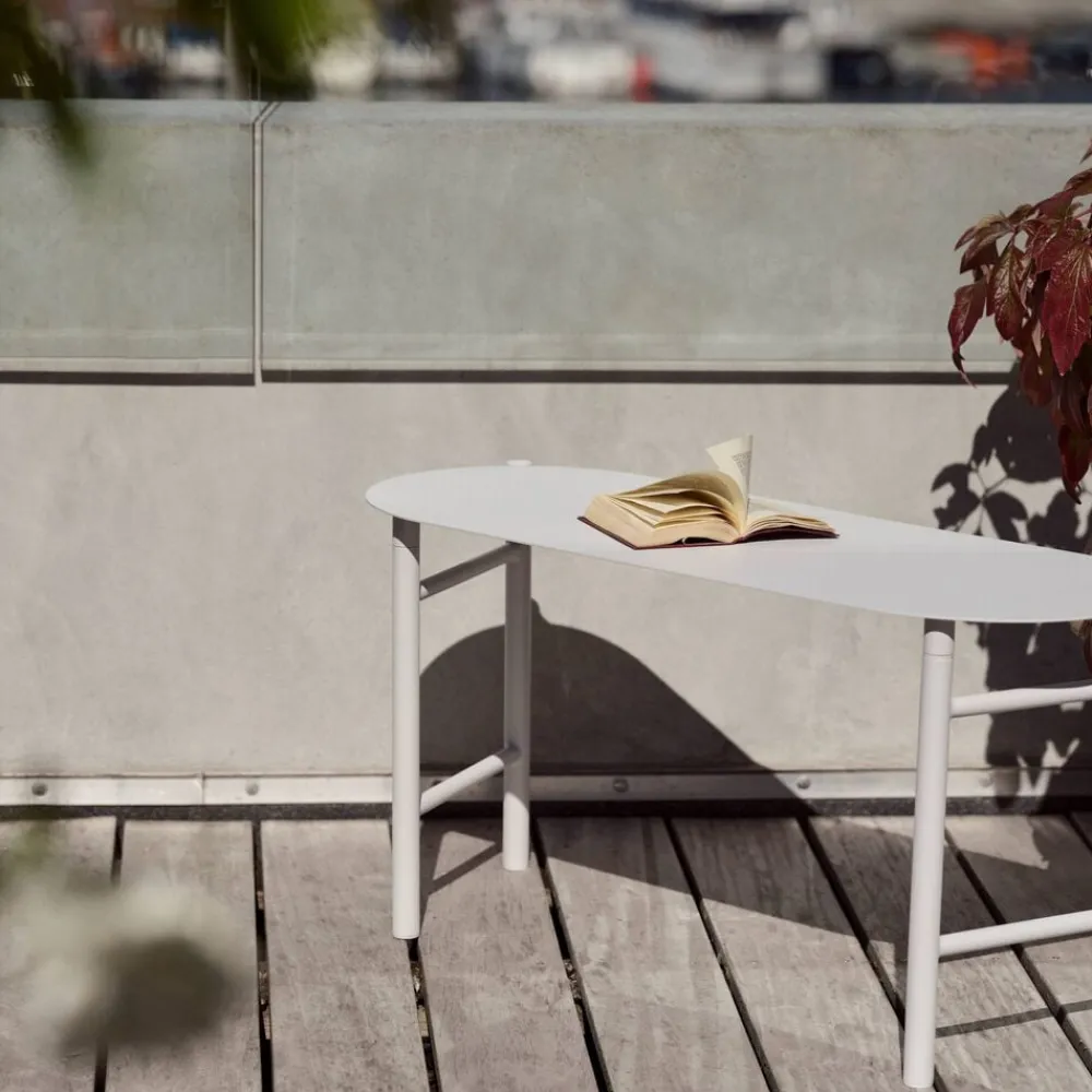 Disc-bænken er med sine 90 cm siddebredde perfekt til to. På trods af sit lette udtryk er den solid i brug. Den er udført i pulverlakeret stål og kan derfor tåle at stå ude. Den passer perfekt på altaner i byen eller små sommerhusterrasser. Præcis som resten af Disc-serien kan bænken foldes sammen, så den er let at flytte med eller pakke væk for vinteren. En anden mulighed er at invitere den ind i entreen eller stuen og bruge den til små stillebens og planter.