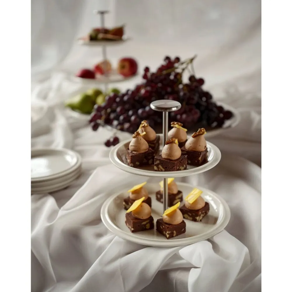 Eau-serien er udført i klassisk offwhite porcelæn, og produkterne er tidløse og lette at integrere i din borddækning eller på buffeten. Så byg fine anretninger i højden, eller lad det enkle serveringsfad give lidt ekstra til hyggen og det gode selskab.
