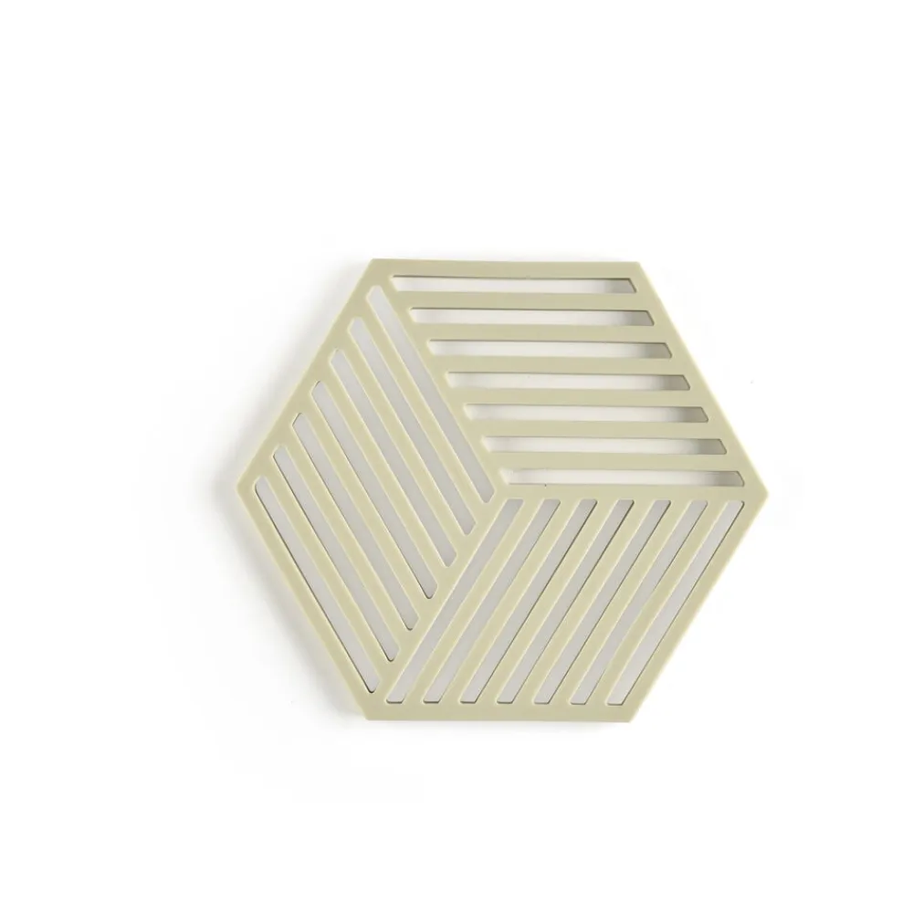 Hexagon bordskånerne i silikone er så grafisk dekorative, at de indbyder til at lægge en flok ud i hele bordets længde uden at stille noget på dem. De er varmebestandige op til 250 °C og kan vaskes i opvaskemaskine. 16 x 14 x 0,9 cm.