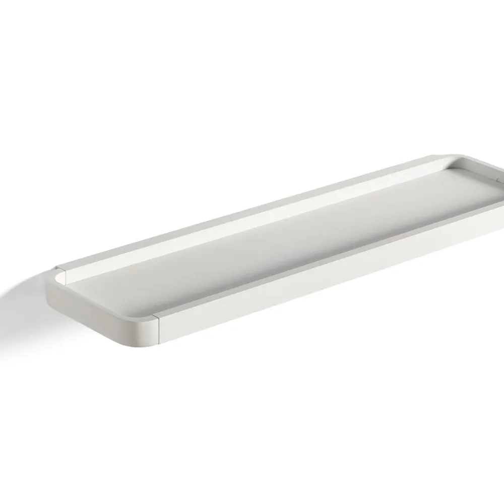 Slå stilen i badeværelset an med den fine hylde til parfumer, cremer eller små fine krukker med duftpinde. Der fås et matchende vægspejl, og spejl og hylde reflekterer hinanden i et enkelt formsprog og samme bredde, der skaber et roligt og ensartet udtryk – uanset om man foretrækker sættet i sort eller hvid. Spejlet måler 70 x 44 cm, mens hylden er 44 cm bred.