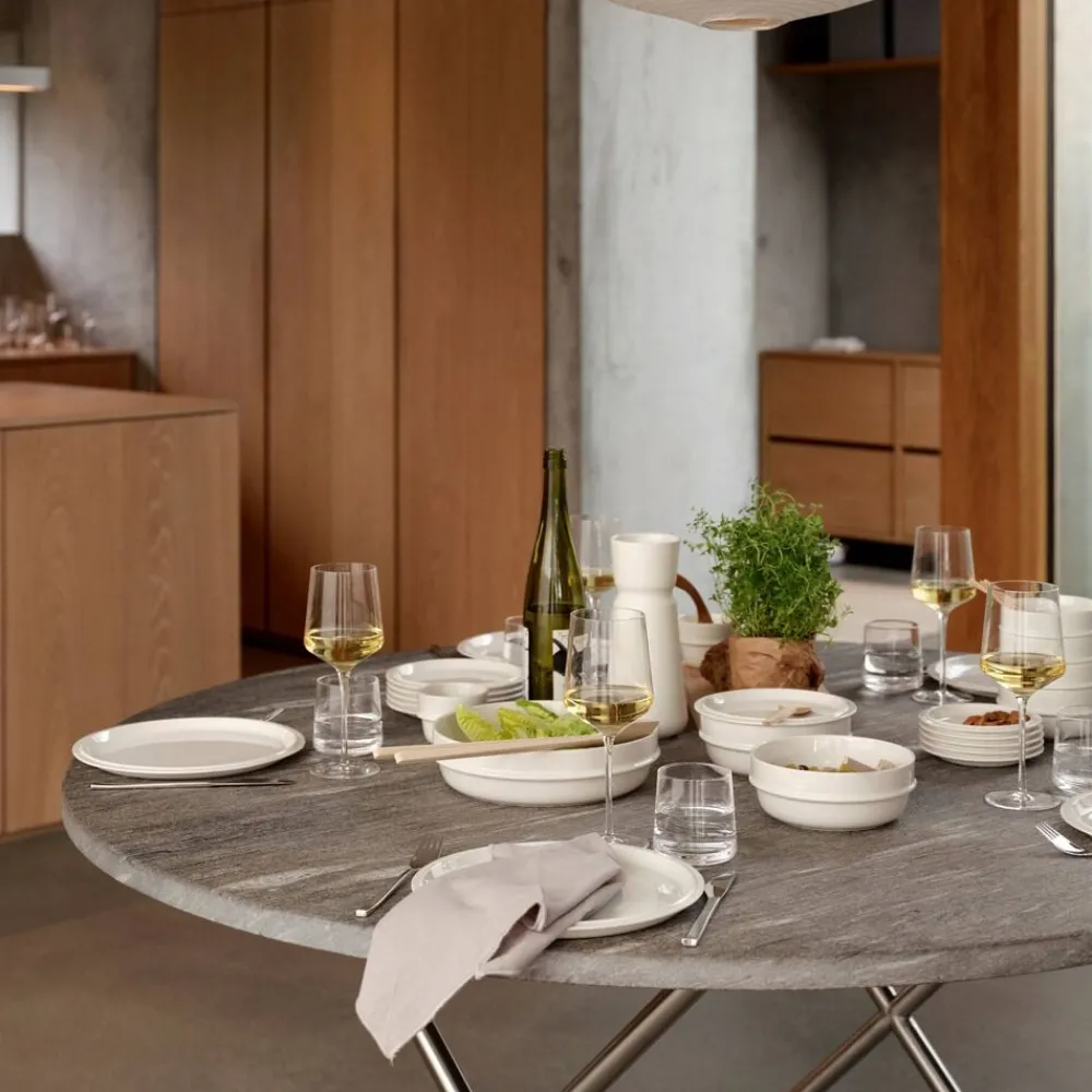 De elegante og stilsikre vinglas i mundblæst blyfrit krystal har en høj stilk og et bredt bassin. De snævrer let ind foroven, men ikke mere, end at vinen rammer gane og tunge perfekt – detaljer der sikrer den optimale nydelse af vinens farve, smag og bouquet. 2 stk. 30 cl.