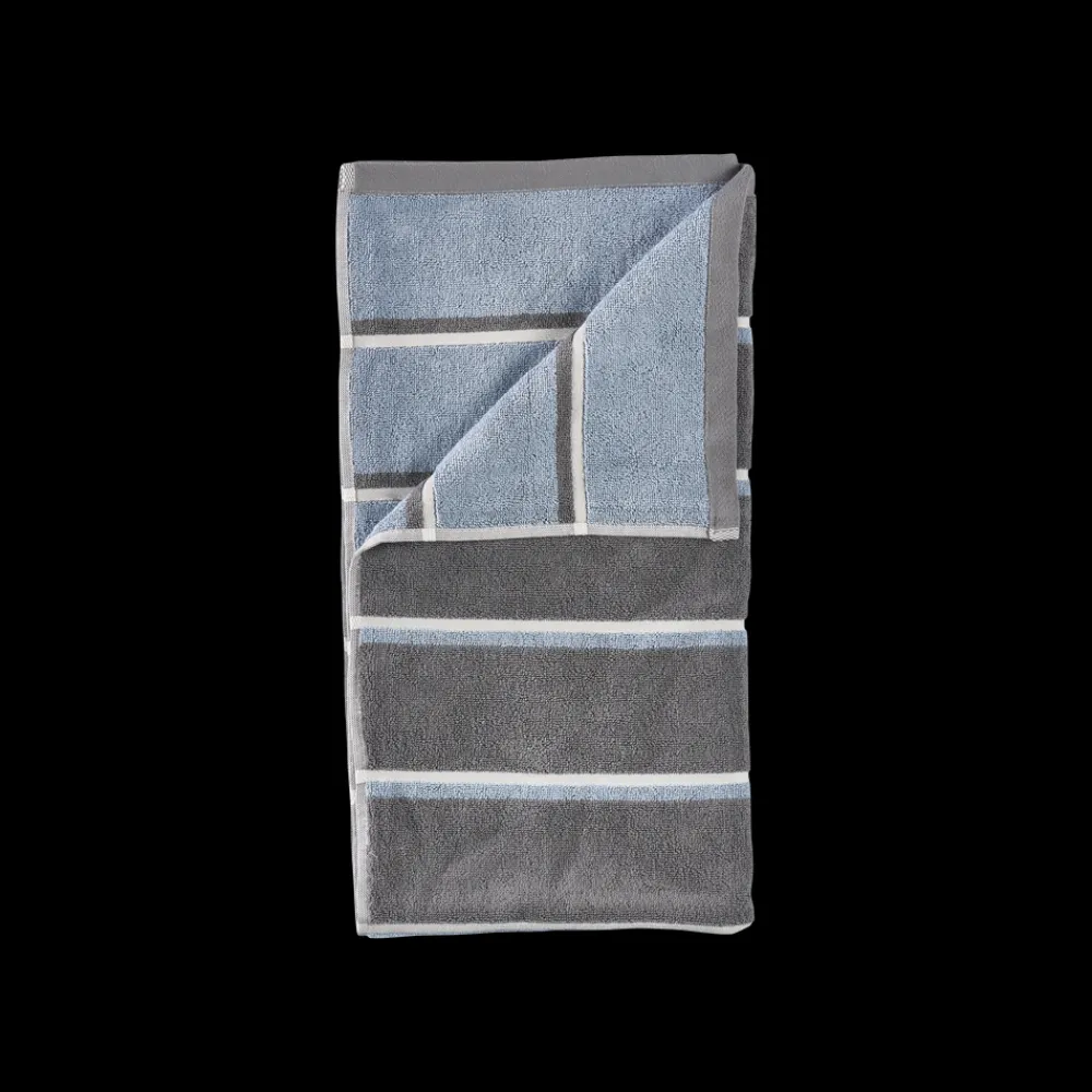 De retroinspirerede striber tilføjer et grafisk, urbant touch, og med en blød, kraftig kvalitet i garnfarvet 600 grams bomuld, føles håndklædet lige så lækkert, som det ser ud.