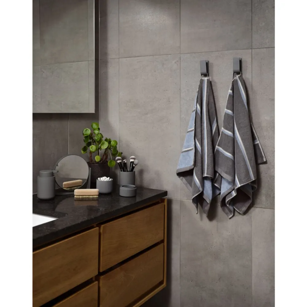 Sauna er navnet – og striberne taler for sig selv. Serien er inspireret af de stramme linjer i en klassisk træbeklædt sauna, hvor designet leger elegant med perspektiv og farvebalance. Hver side af håndklædet fremhæver sin egen dominerende farve – en fin detalje, der giver dig to forskellige udtryk i ét og samme håndklæde