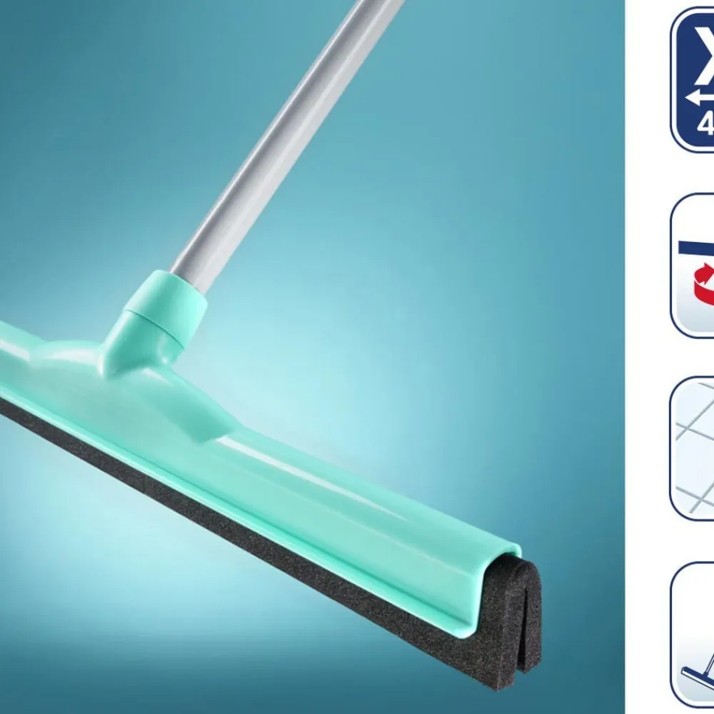 Praktisk gulvskraber med teleskopstang, der kan justeres fra 80 til 137 cm. Den 45 cm brede skraber har en dobbelt gummiliste, som effektivt fjerner vand fra gulvet.