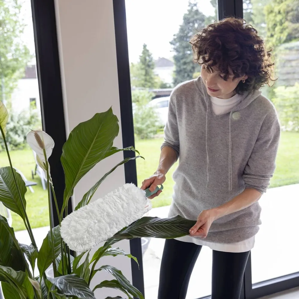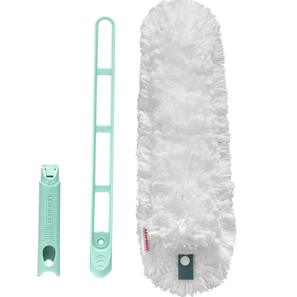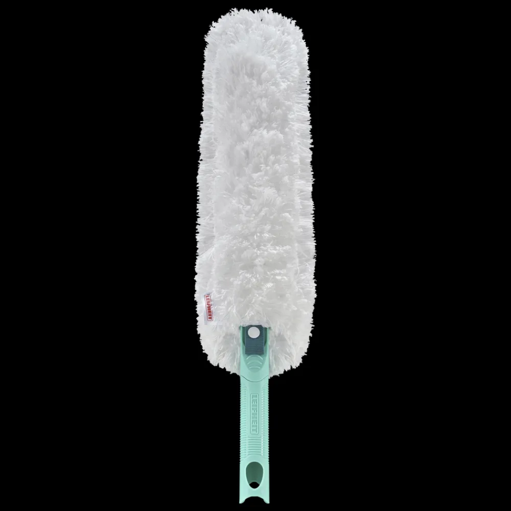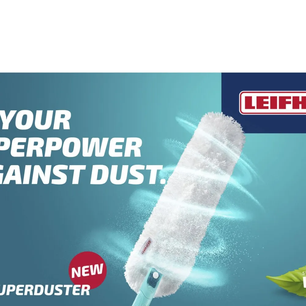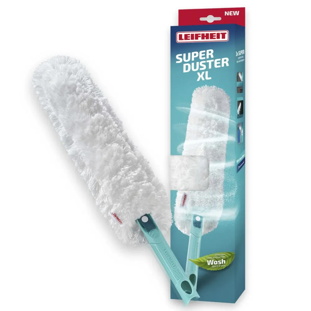 Superduster XL støvkost har en meget høj tiltrækningskraft, der effektivt tiltrækker og fastholder støv, snavs og hår med sin ekstra lange 360° mikrofiberklud – helt uden at hvirvle støvpartiklerne op i luften. Med hovedets fleksible udformning kan du nemt komme rundt omkring dine ting, og det sørger for, at både store flader og smalle sprækker bliver gjort ordentligt rene – også hjørner og andre svært tilgængelige kroge. Det ergonomiske håndtag ligger godt i hånden, og med Leifheits Click system kan du nemt sætte et ekstra skaft på, så du også kan nå op i højden. Når du er færdig med at støve af, kan mikrofiberkluden tages af og vaskes ved 40 °C. Ryst efter vask og lad tørre.