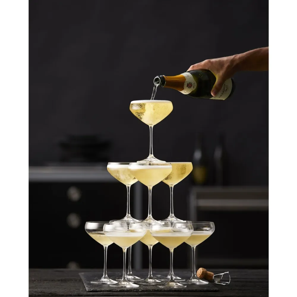 4 stk. Juvel champagneskål, 34 cl. Den høje stilk giver champagneskålen et smukt og stilfuldt udtryk, og det tidløse design gør det til et klassisk glas. Takket være dets alsidighed passer glasset til enhver borddækning. Det kan bruges både som champagneskål, cocktailglas og til portionsanretning af forretter og desserter. H 16,5 cm.