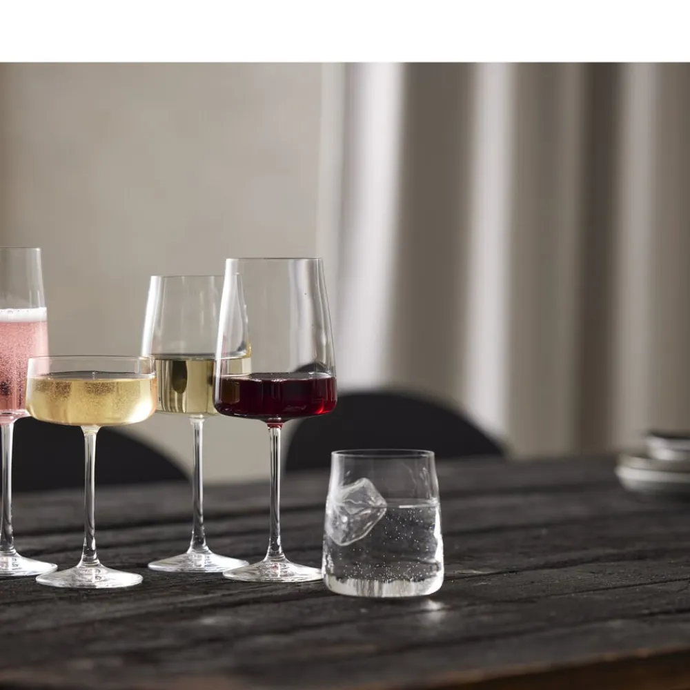 4 smukke hvidvinsglas fra glasserien Zero fra Lyngby Glas. Nyd din yndlingsvin og glassenes fine elegance. Tåler opvaskemaskine. 43 cl, højde 21,5 cm.
