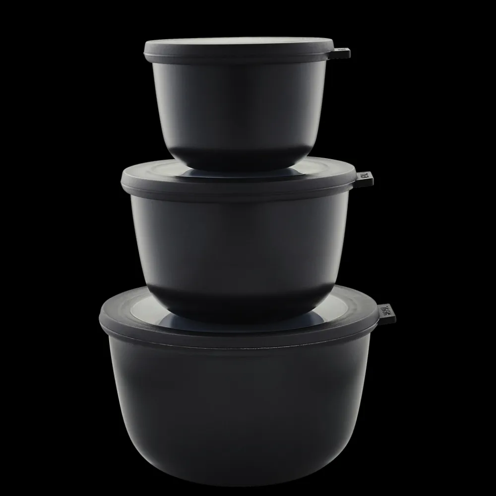 Mepal Cirqula opbevarings- og serveringsskålesæt – rummelig, praktisk og dekorativ i kølige, nordiske farvetoner. Sæt bestående af 500 ml, 1000 ml og 2000 ml.