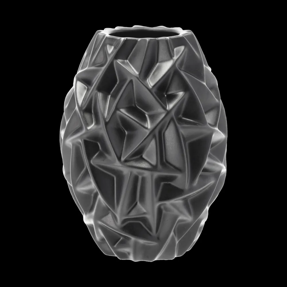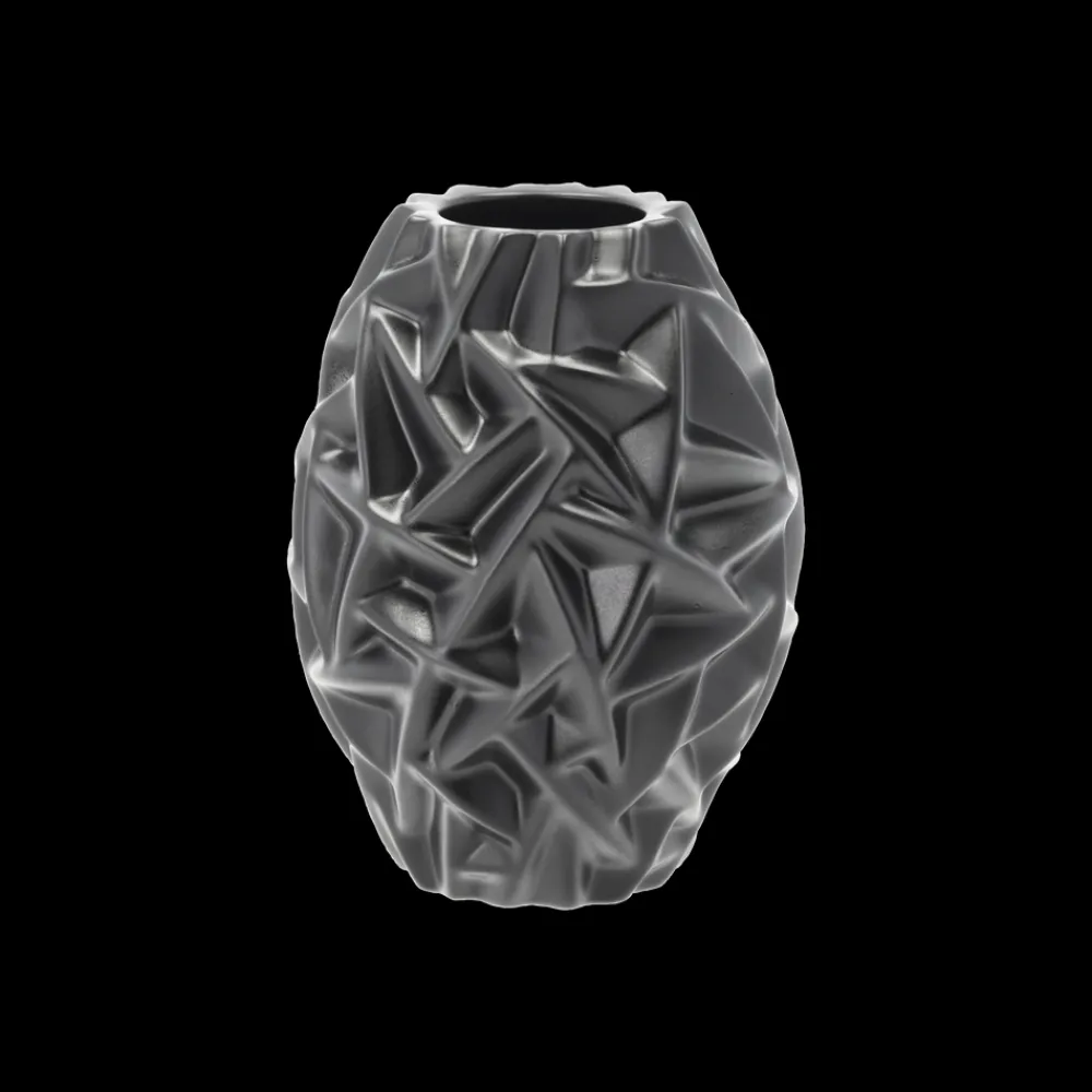 Willow vase, 16 cm høj, i porcelæn med en smuk sort glasur. Inspirationen til vasens smukke mønster er hentet i naturen, fra pilegrene, der krydser hinanden i et virvar og danner forskellige rum imellem sig. Vasens form og skyggespillet i mønsterets fordybninger gør den smuk og skulpturel – både med blomster og uden, som et dekorativt indretningselement i hjemmet.