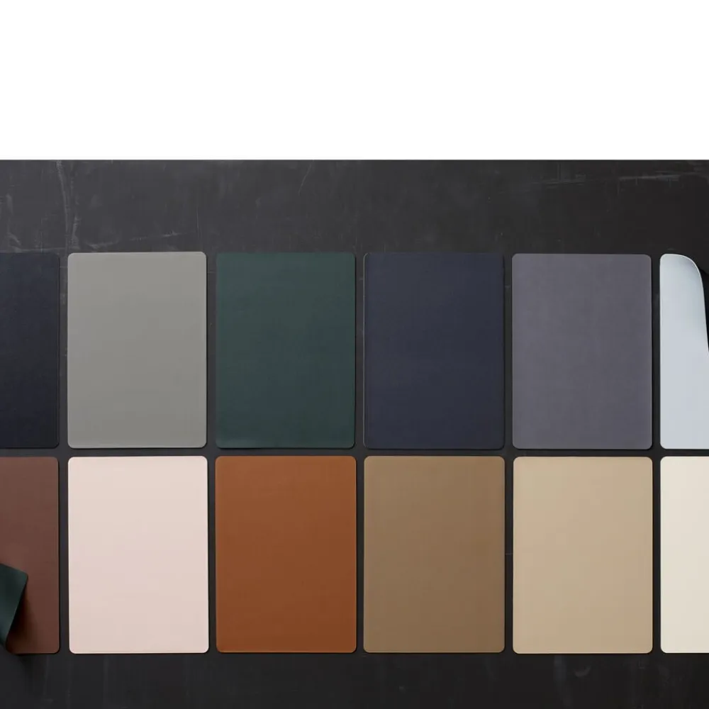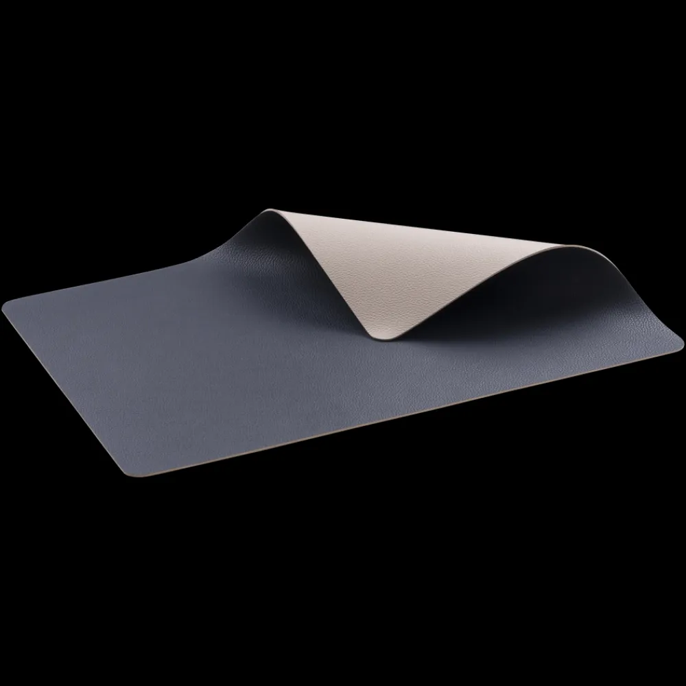 Vendbare dækkeservietter i praktisk vaskbart læderlook giver borddækningen et råt og moderne udtryk. Kongeblå/Sand.