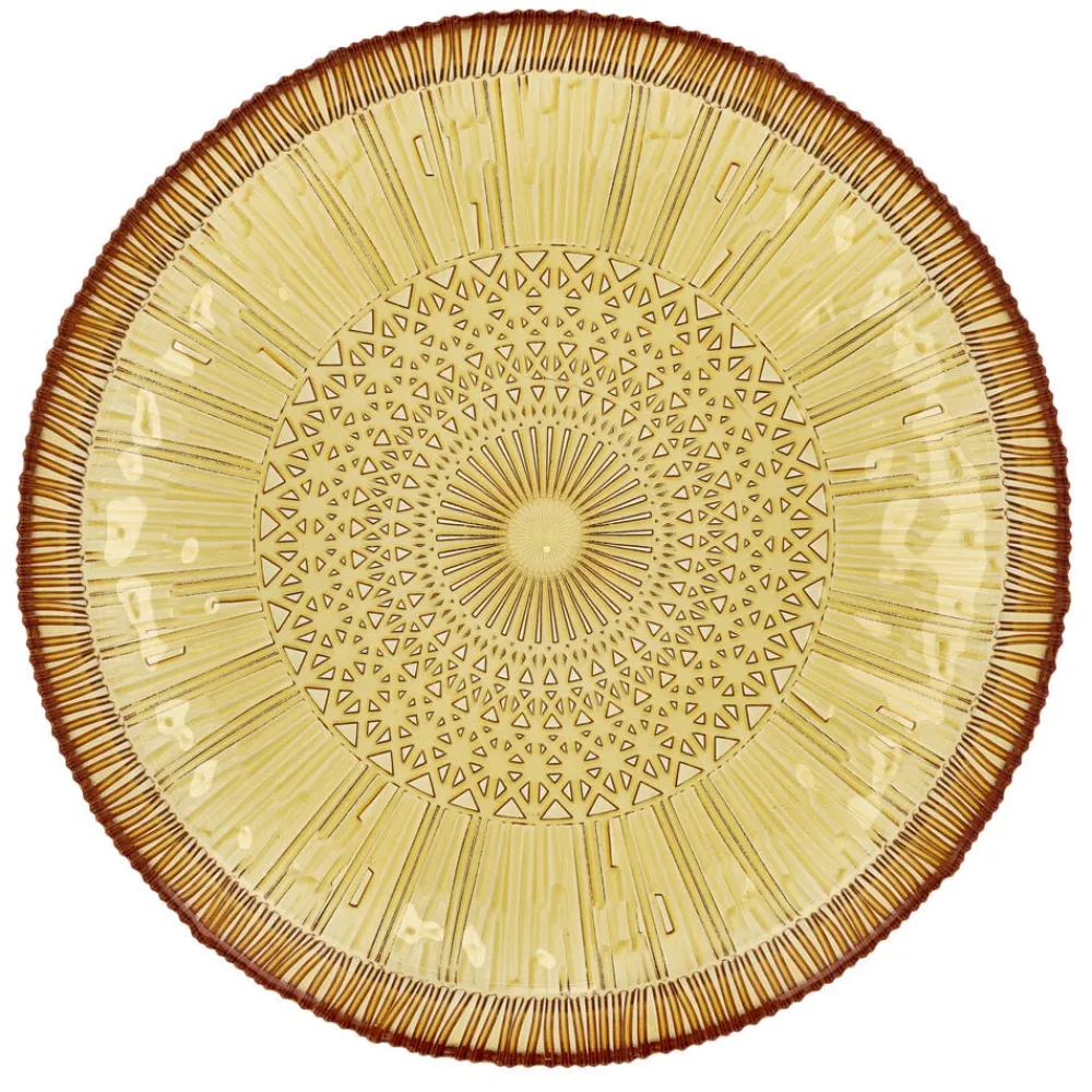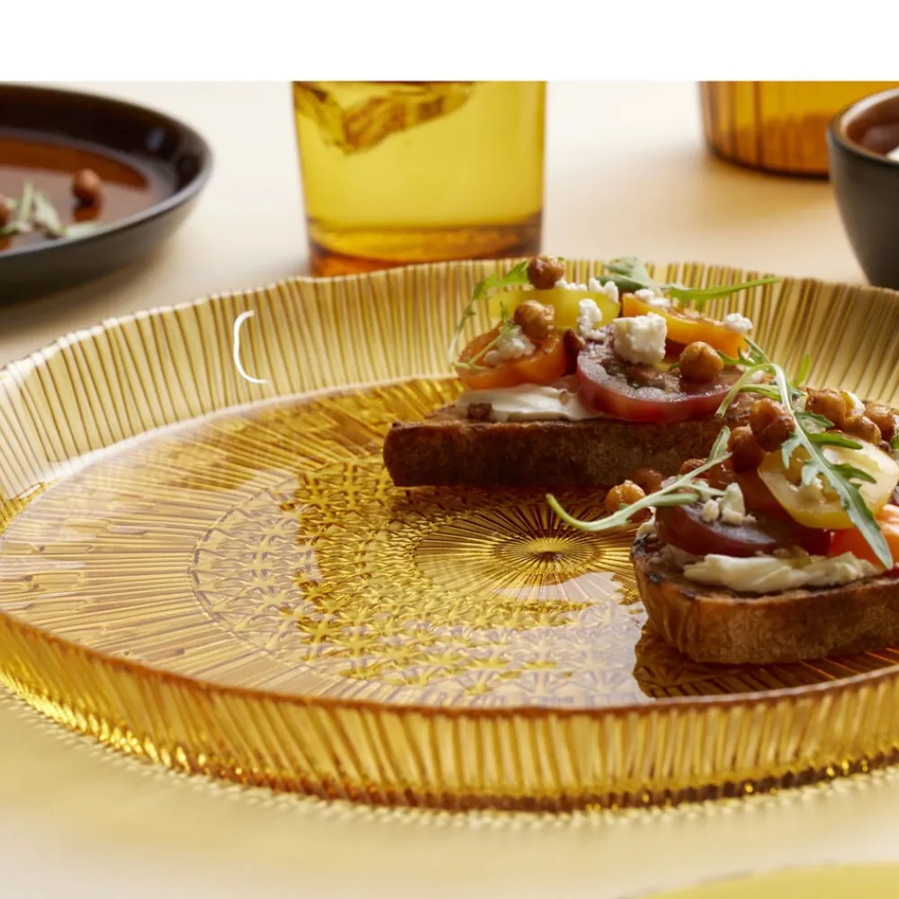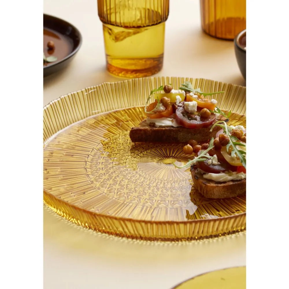 Det runde serveringsfad i gennemfarvet glas med en diameter på 30 cm gør maden endnu mere indbydende. Det er perfekt til servering af alt fra frugt til tapas. Velegnet til opvaskemaskine. Når du køber fra Kusintha-kollektionen, støtter du udsatte børn i verdens fattigste områder.