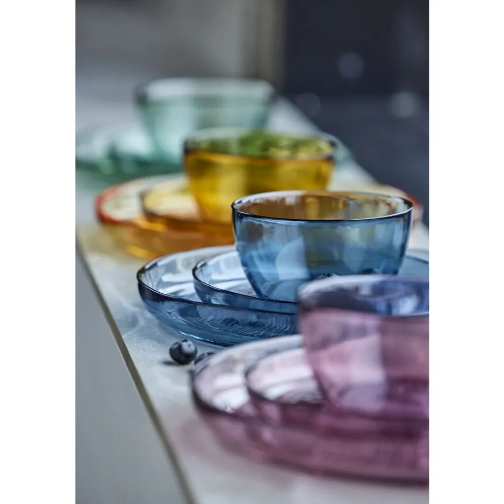 Flotte skåle i gennemfarvet glas med den perfekte størrelse til alting – fx snacks, morgenmad og kager. De fås i farverne grøn, amber, pink og blå, og når du køber fra Kusintha-kollektionen, støtter du samtidig udsatte børn i verdens fattigste områder.