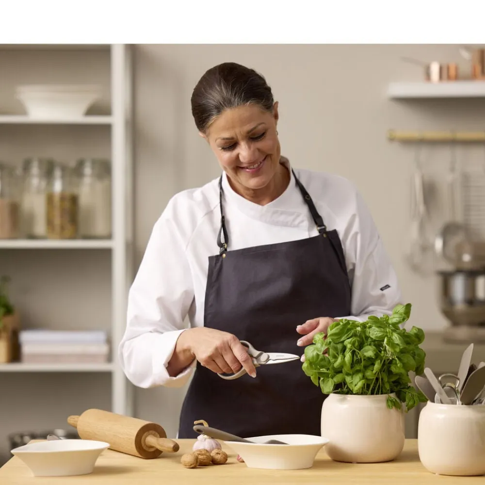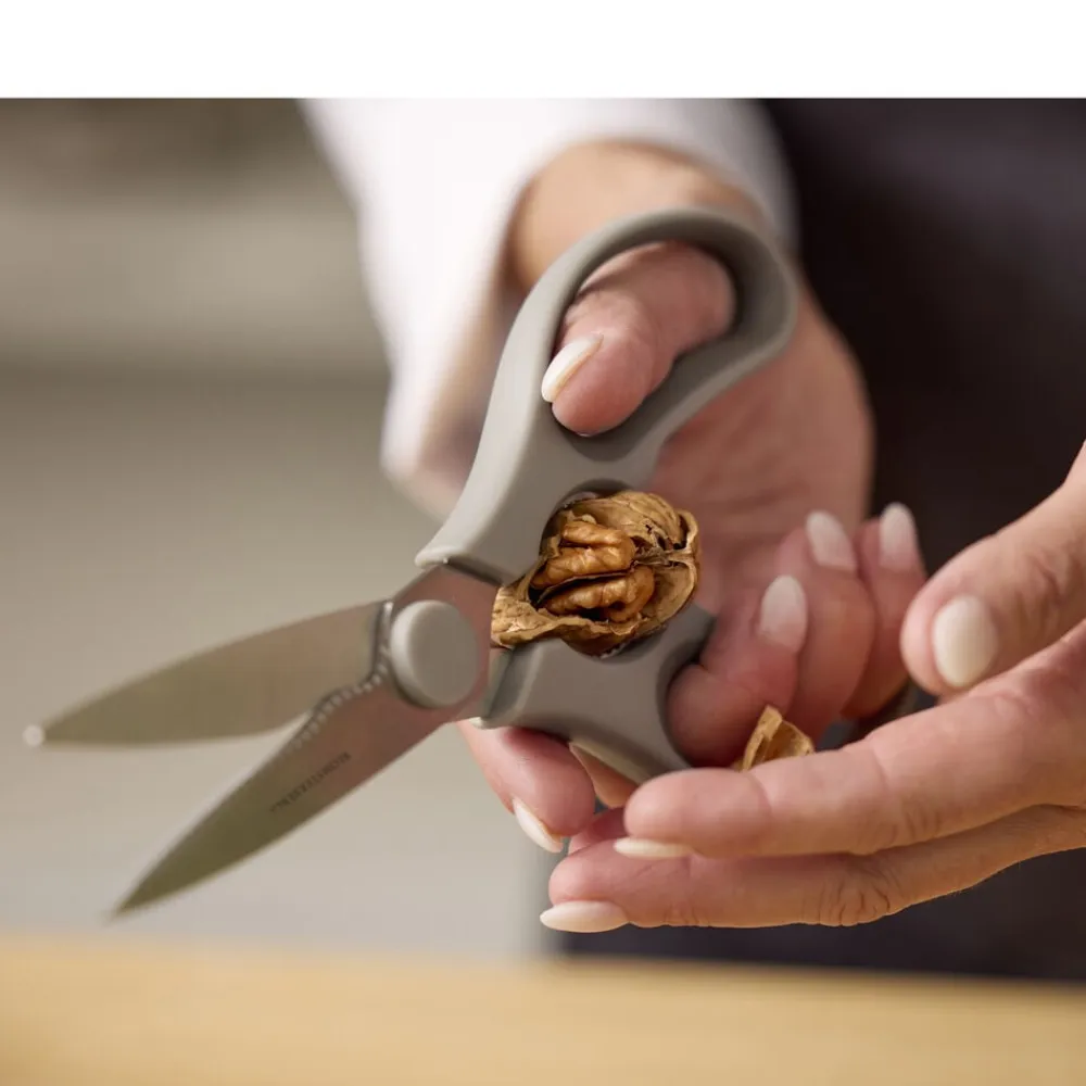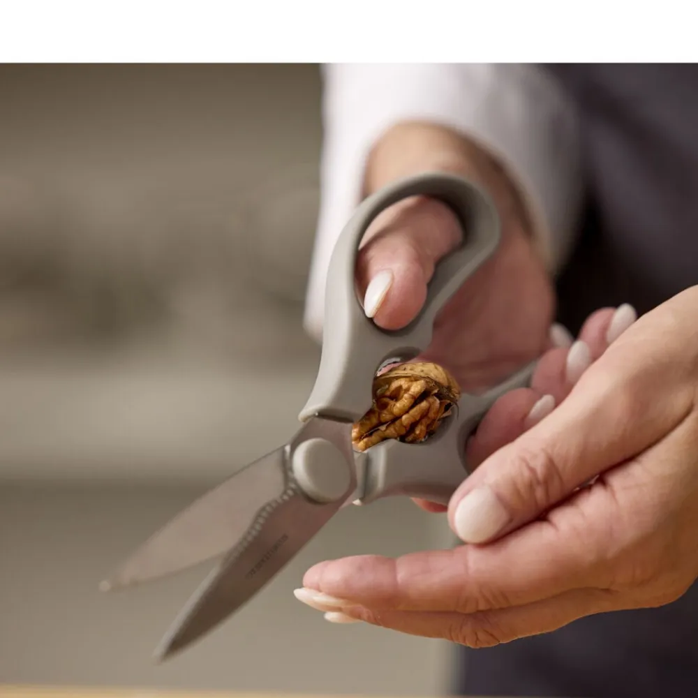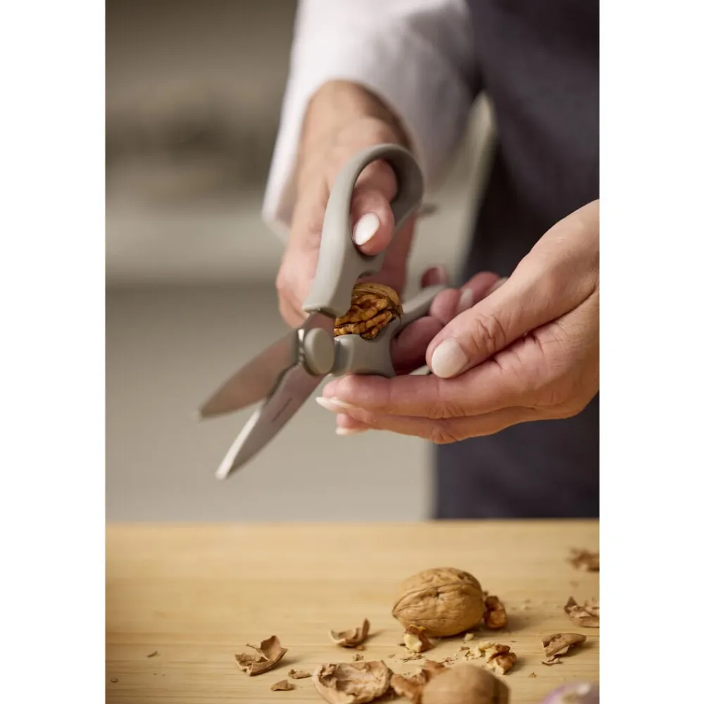 En god køkkensaks er rar at have ved hånden – og denne på 21 cm klarer lidt af det hele. I midten finder du et praktisk greb til at knække nødder og åbne flaskeskruelåg, der driller. Saksen kan skilles ad, hvilket gør rengøring lettere. Nem at bruge – og nem at blive glad for.