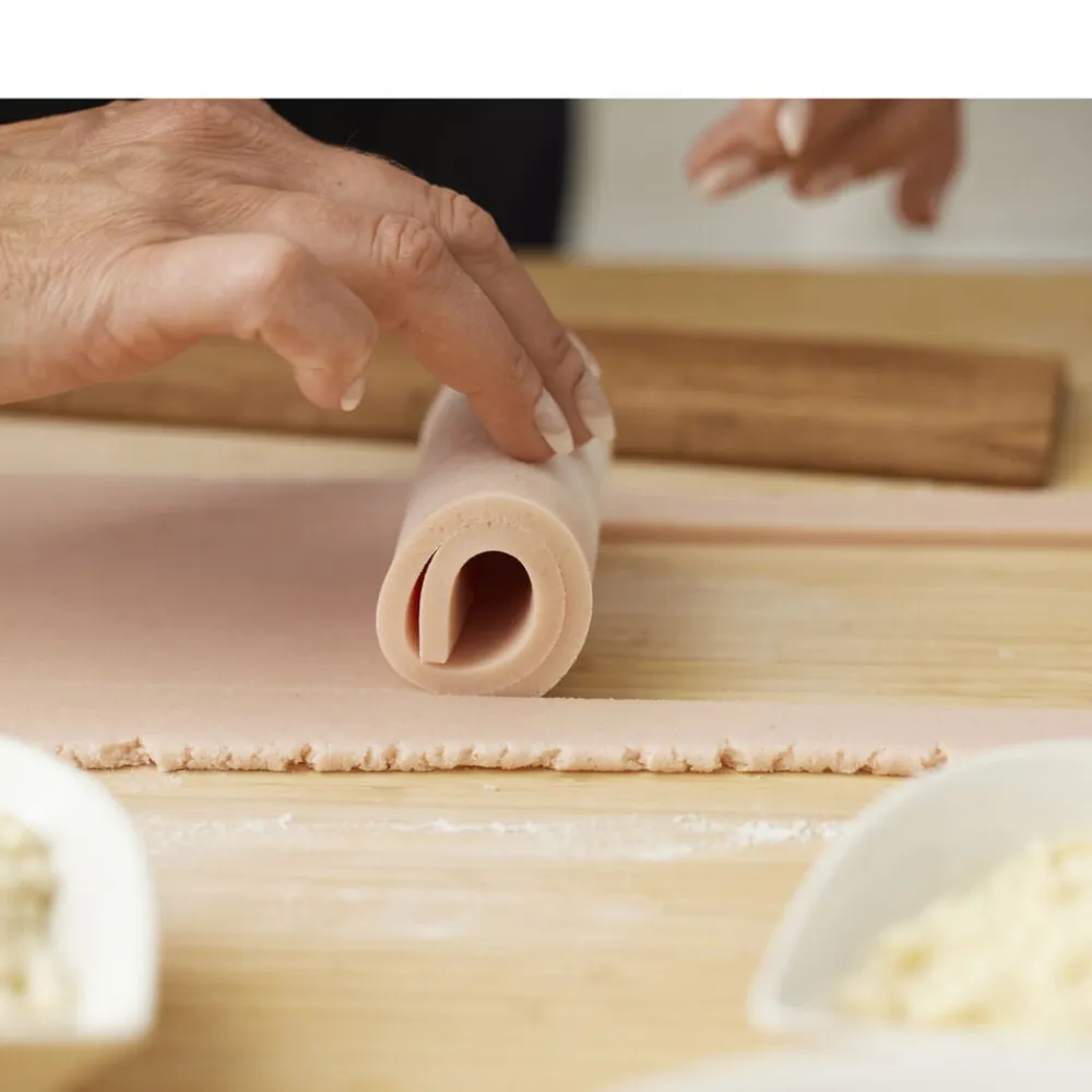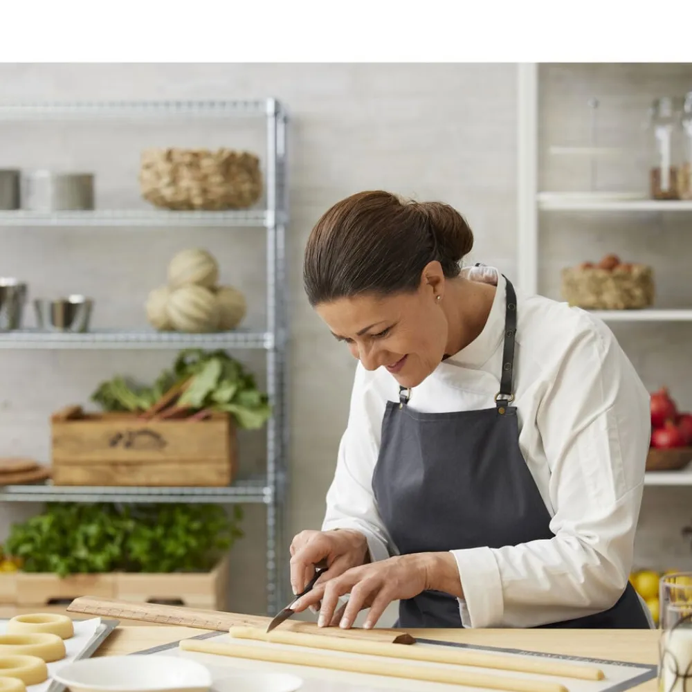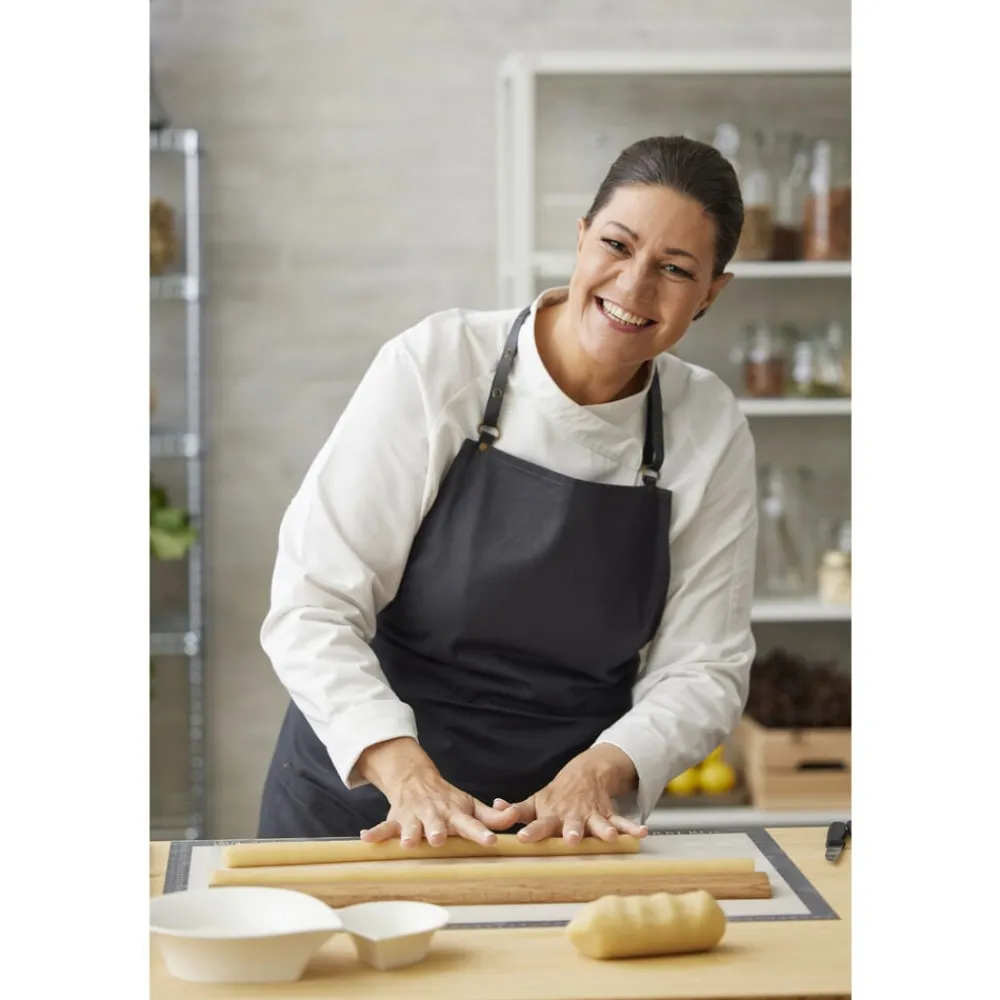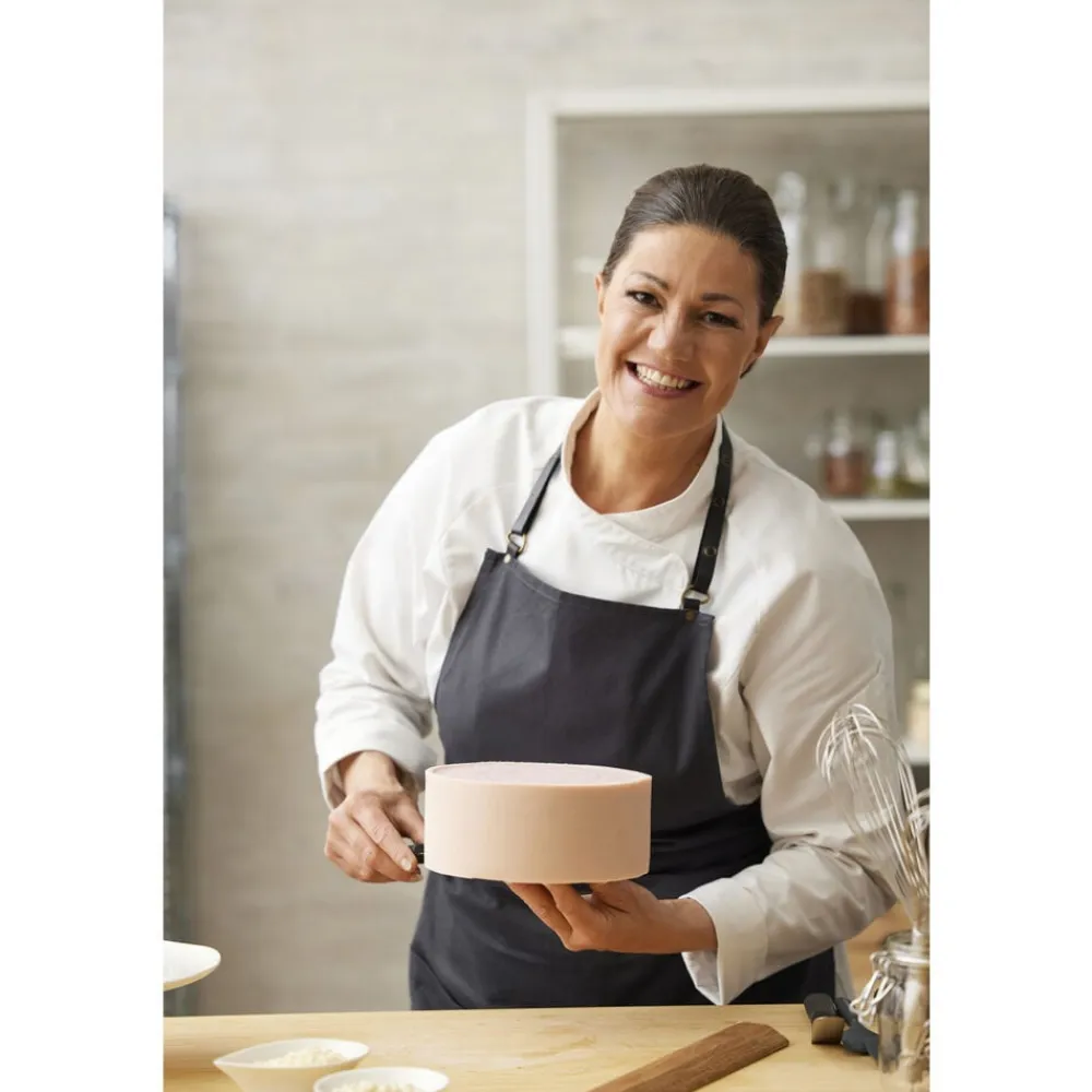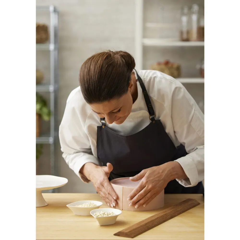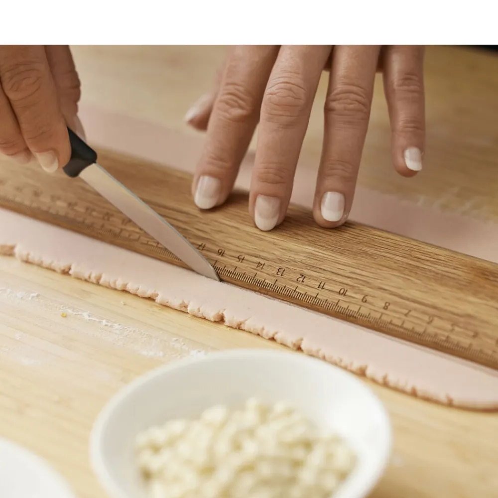 Den flotte lineal i smukt egetræ kan du bruge til at udmåle alt det, der skal afpasses til bestemte og lange mål, for eksempel tærtedejens diameter, omkredsen af marcipanbåndet, bredden af hindbærsnitterne og meget mere. Linealen er 51 cm lang med letlæselig centimeterskala langs den ene side og afmærkning til at lave ringene til en kransekagetop langs den anden.