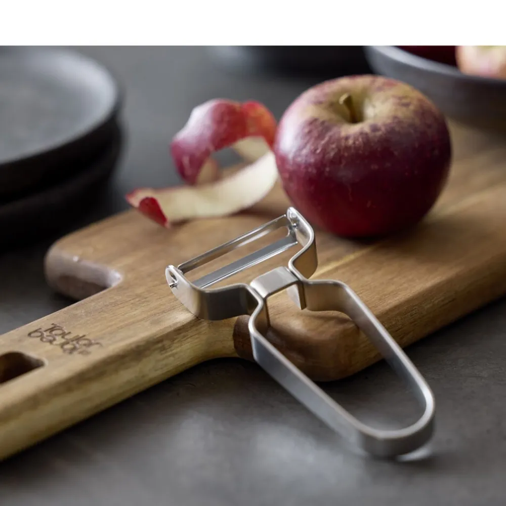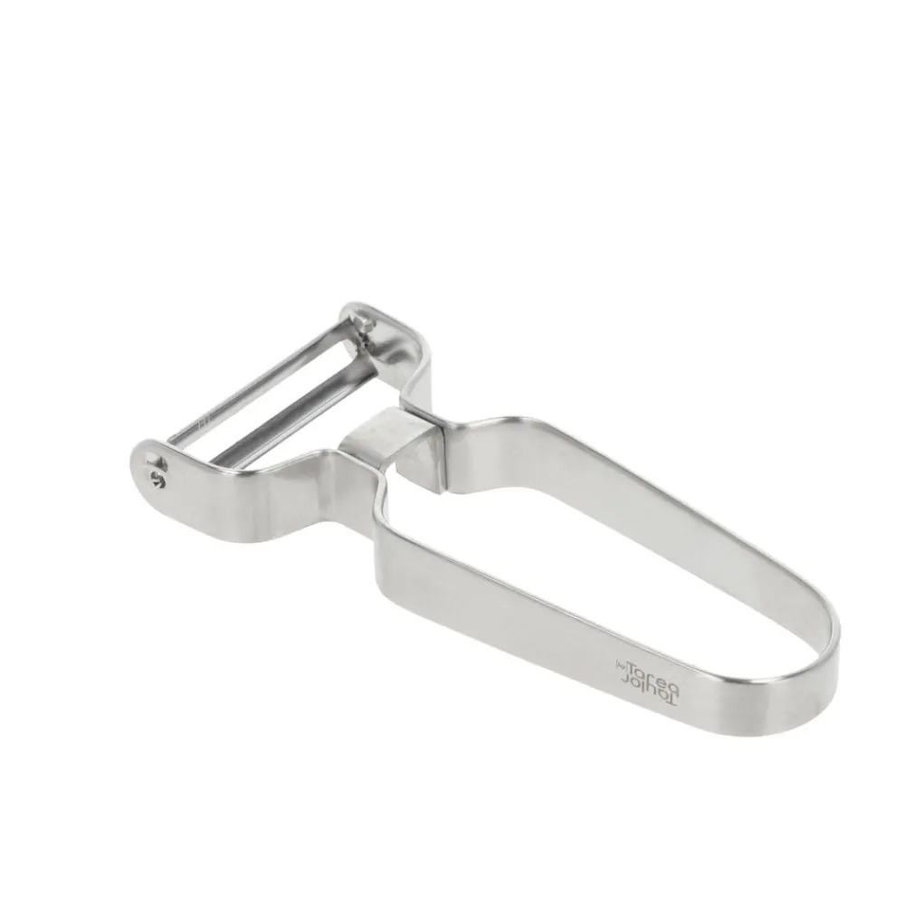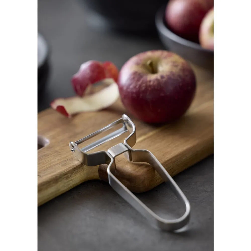 Du har et godt greb om den effektive grøntsagsskræller med en klinge i knivskarpt kvalitetsstål, uanset om du foretrækker at bruge højre eller venstre hånd, eller om du skræller væk fra eller imod dig selv.