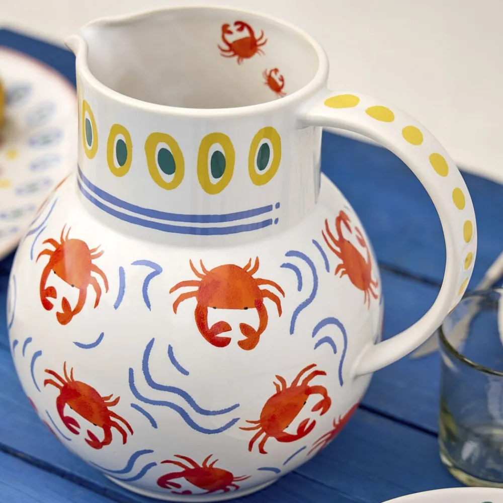 Kande, 5,95 liter. Kanden skaber en stemning af hav, strand og sydlandsk afslappethed til bordet med sine livlige røde krabber og bølgende blå linjer. Den rummelige størrelse gør den perfekt til at samle venner og familie om forfriskende drikke og hyggelige måltider under den varme sommersol.