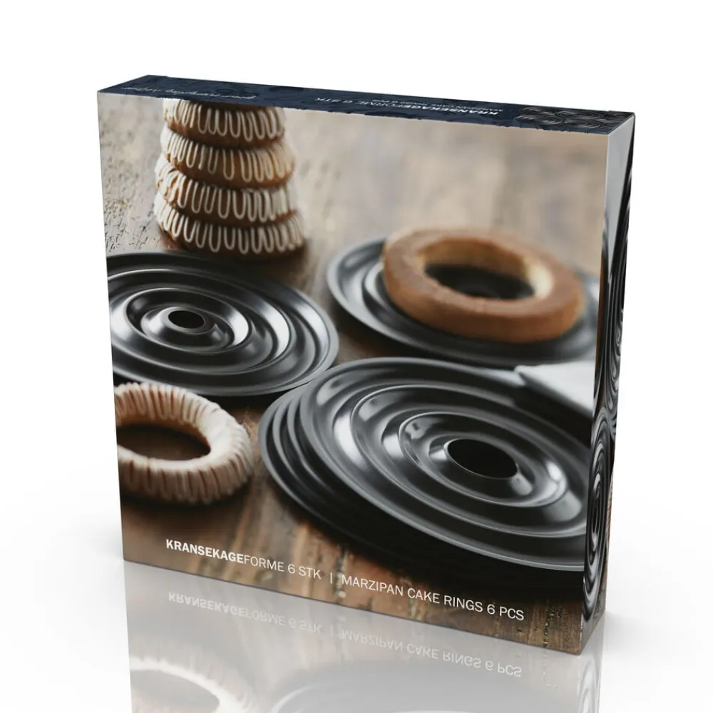Bageringene kan med fordel smøres og drysses med rasp og kagerne bliver perfekte. Man kan ikke smage raspen. Det gør at kransekagen ikke klistrer sig fast.