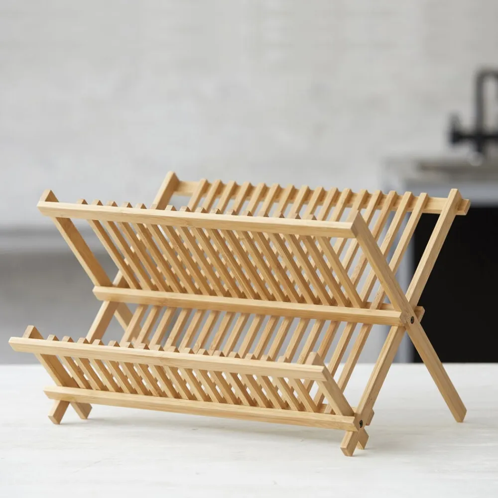 Funktionelt opvaskestativ i bambus. Den øverste del er indrettet til tallerkener og skåle, mens den nederste del er praktisk til f.eks. kopper og glas. Stativet er dekorativt at have stående fremme, men kan også foldes sammen, så det fylder minimalt, når det ikke er i brug. Sammenklappet mål: 42 x 35 x 3 cm.