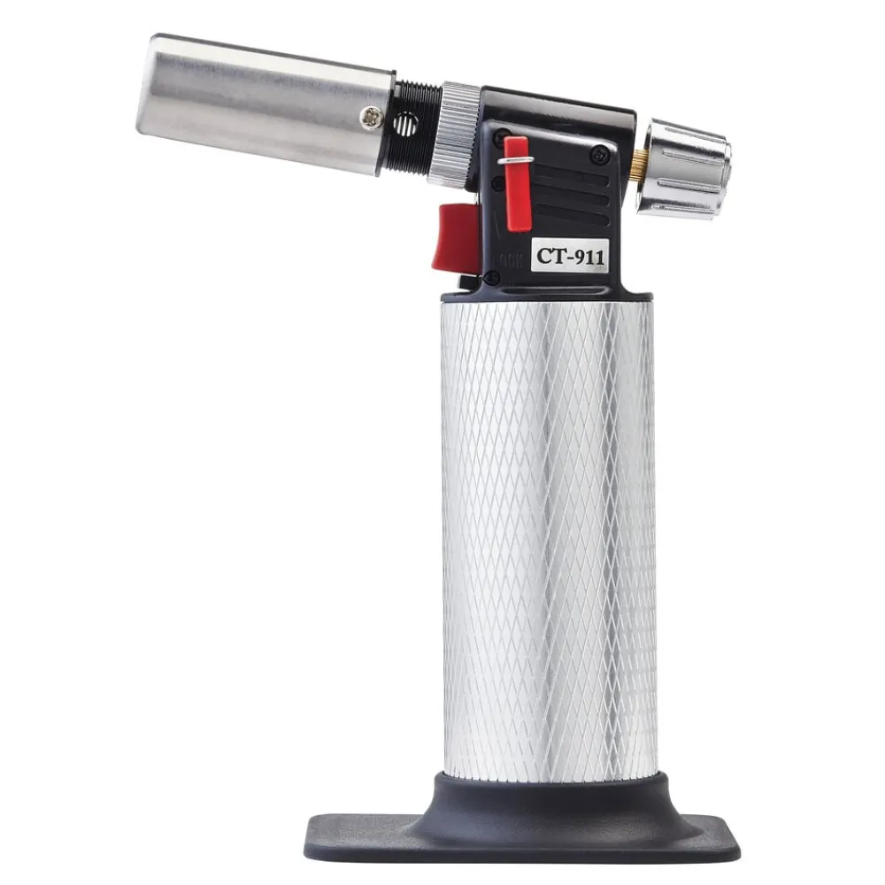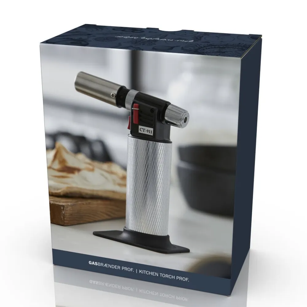 Gasbrænder til professionel brug. 16 cm høj. Ideel til at karamellisere sukker, cremebudding og tærter, smelte ost, afskinde tomater, brune kød m.m. Kan betjenes fra enhver vinkel. Tændes elektronisk. Justerbar flamme. Ergonomisk design og nem at genfylde. Brug almindelig butan lightergas.
