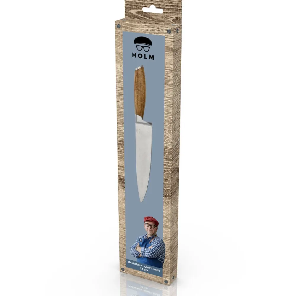 HOLMs knivserie indeholder en række lækre knive. De flot rundede skafter, der ligger behageligt i hånden, er af akacietræ med virkeligt smukke og karakteristiske åretegninger og er afsluttet med en elegant stålkappe for enden af skaftet. Bladene er af rustfrit stål i høj kvalitet. Knivene skal vaskes i hånden med varmt vand og sæbe, også før første brug.