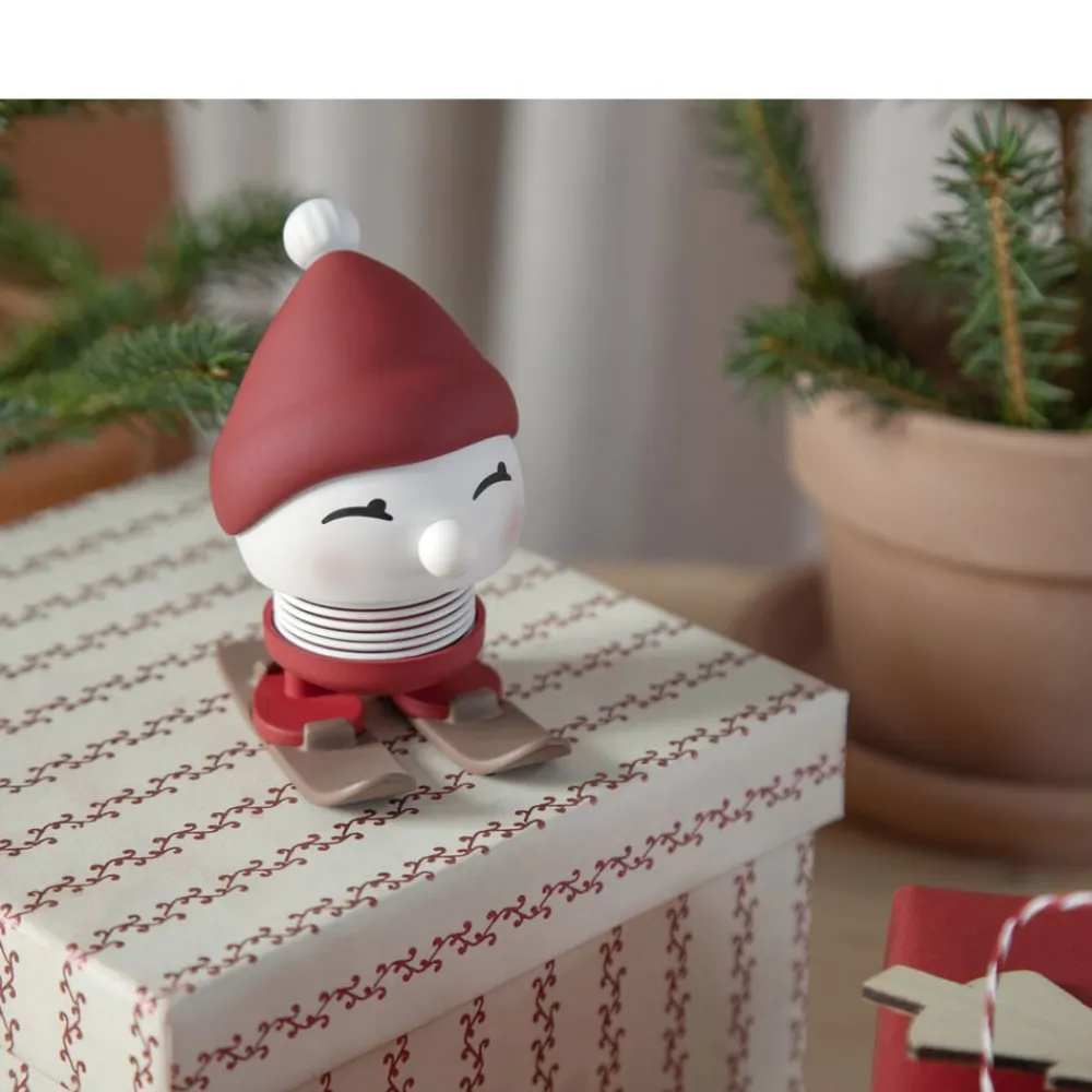 Giv den rødkindede skihoptimist et lille puf og se den hoppe af glæde over den glitrende hvide sne på fjeldet. Soft Skiing Bimble står klar med sin røde tophue – både spændt og stolt – klar til eventyr i vinterlandskabet. Skiene kan tages af og på. H 7,2 cm, D 6,1 cm.