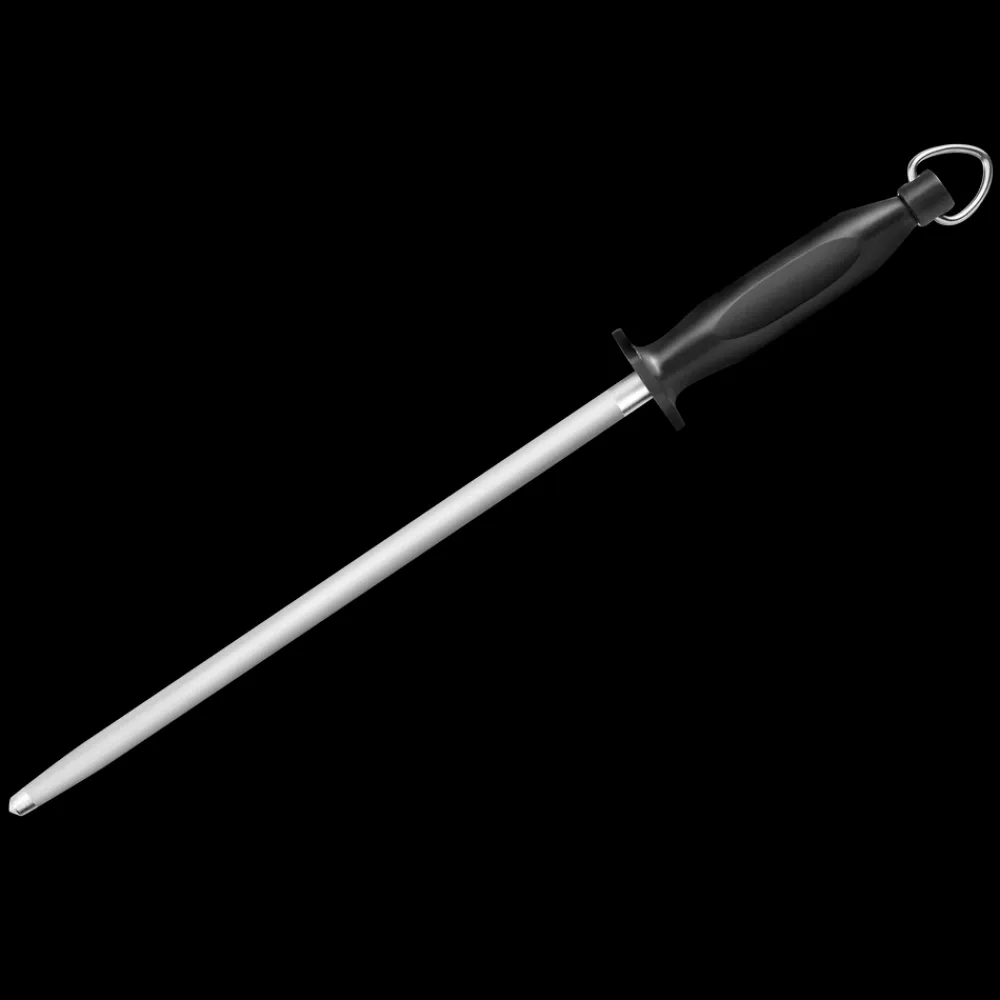 Rundt strygestål med sort håndtag, 30 cm. Dine knive bliver uskarpe med tiden, men med dette flotte strygestål kan du let skærpe og holde dem skarpe. Brug gerne strygestålet 3-4 gange om måneden.